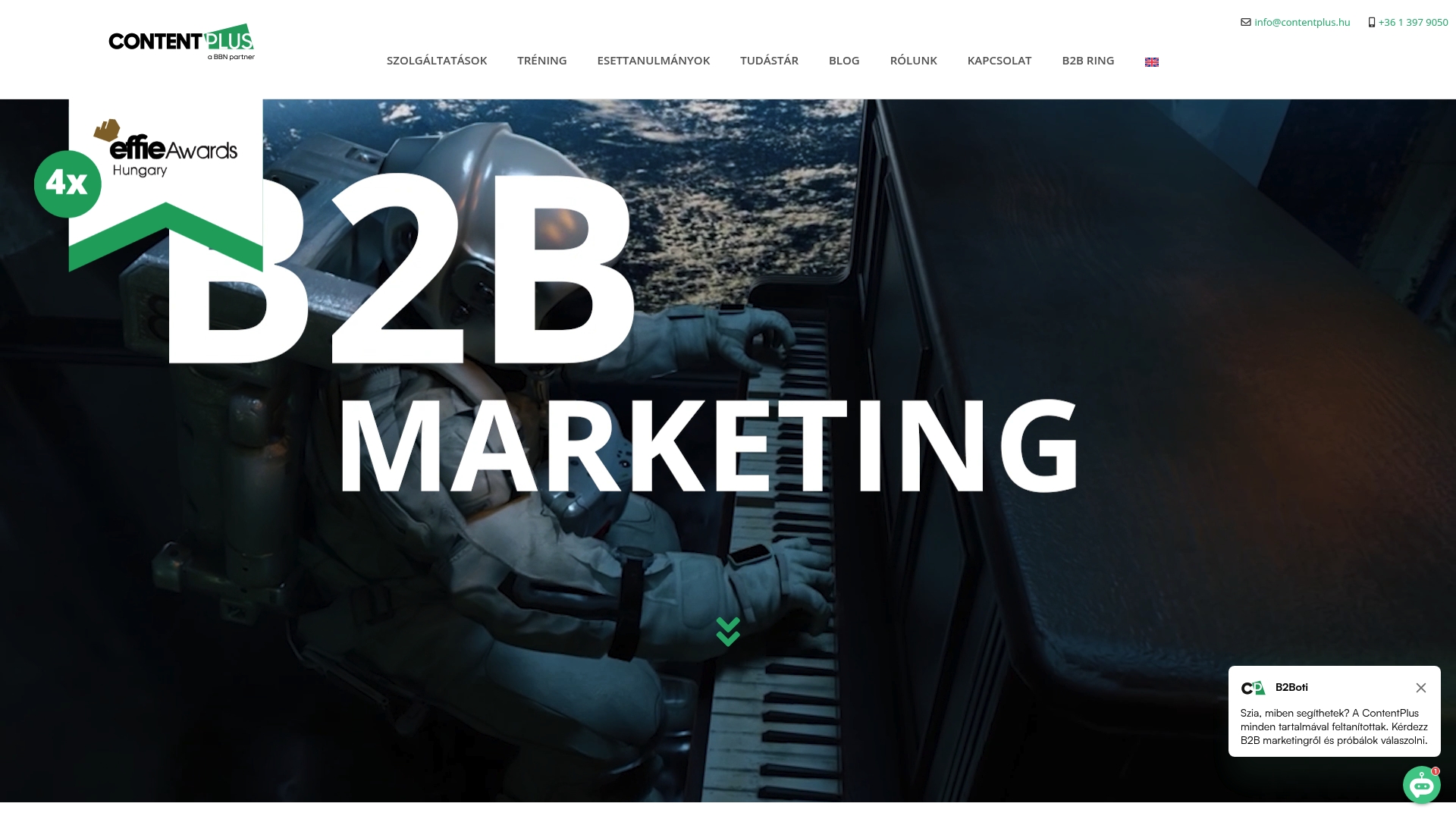 | Contentplus | B2B kampányok, keresőoptimalizálás, KPI-mérés, nemzetközi stratégiai szolgáltatások | Nemzetközi jelenlét<br>Integrált platform<br>Stratégiai fókusz | Komplexitás kis cégek számára<br>Árazás nem nyilvános<br>Támogatás nem részletezett | Egyedi ajánlat |