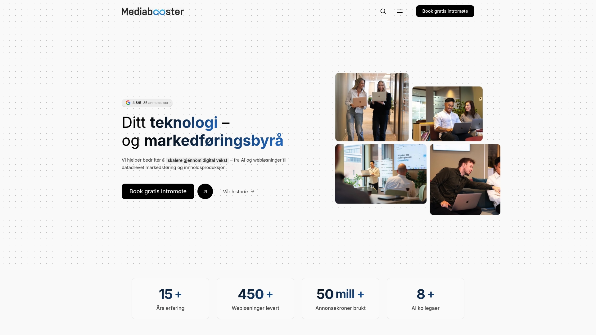 - Erfaring og kompetanse: MediaBooster presenterer seg som et erfarent team, noe som gir trygghet for komplekse digitale prosjekter.