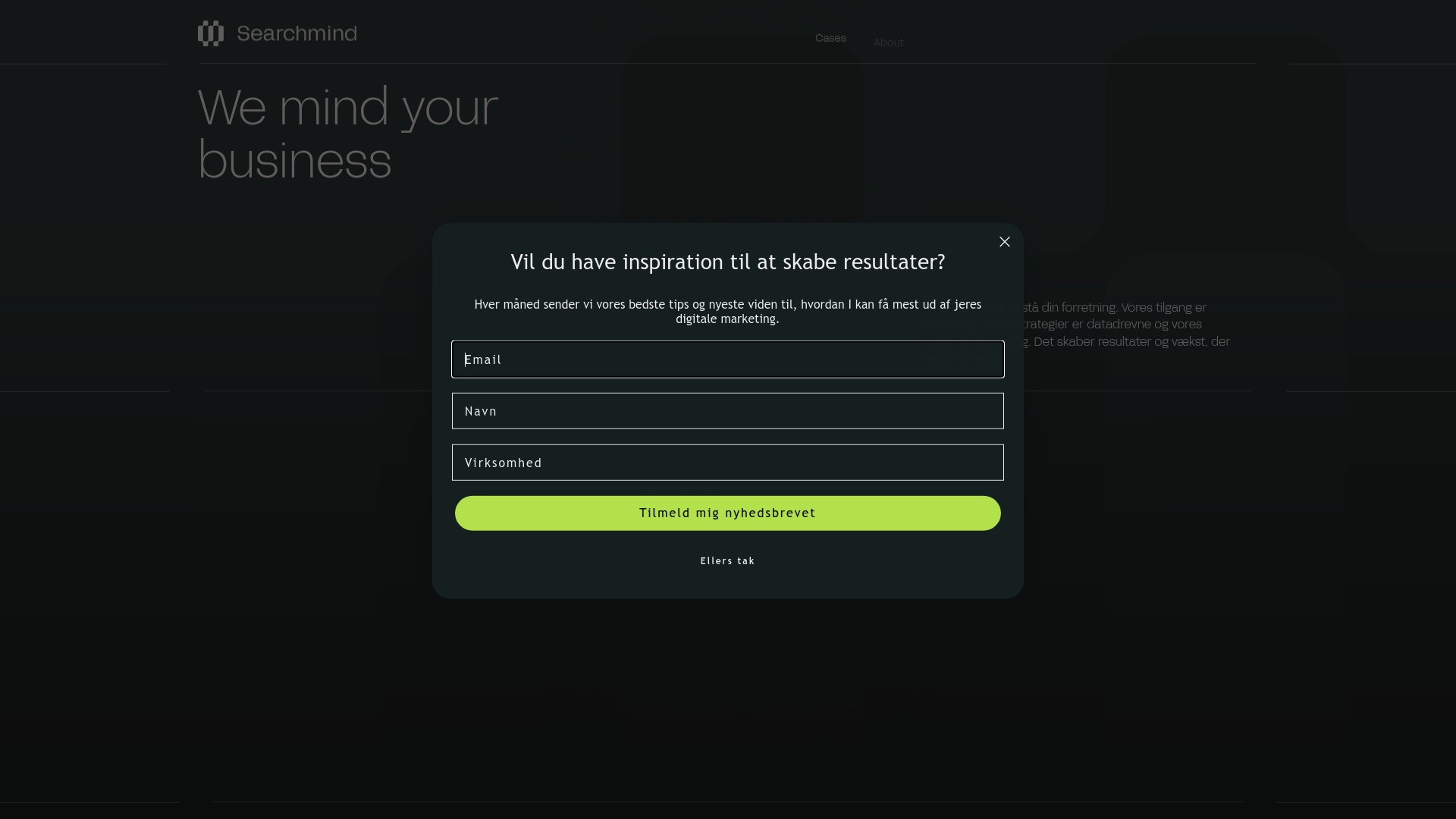 Forestil dig en Dansk virksomhed, der ønsker at genopfinde sin online strategi: SearchMind analyserer forretningen, formulerer en målrettet plan for brandposition og onlinekampagner, og følger op med løbende dataanalyse for at optimere konverteringer og synlighed. Resultatet forventes at være øget trafik og salg over tid.