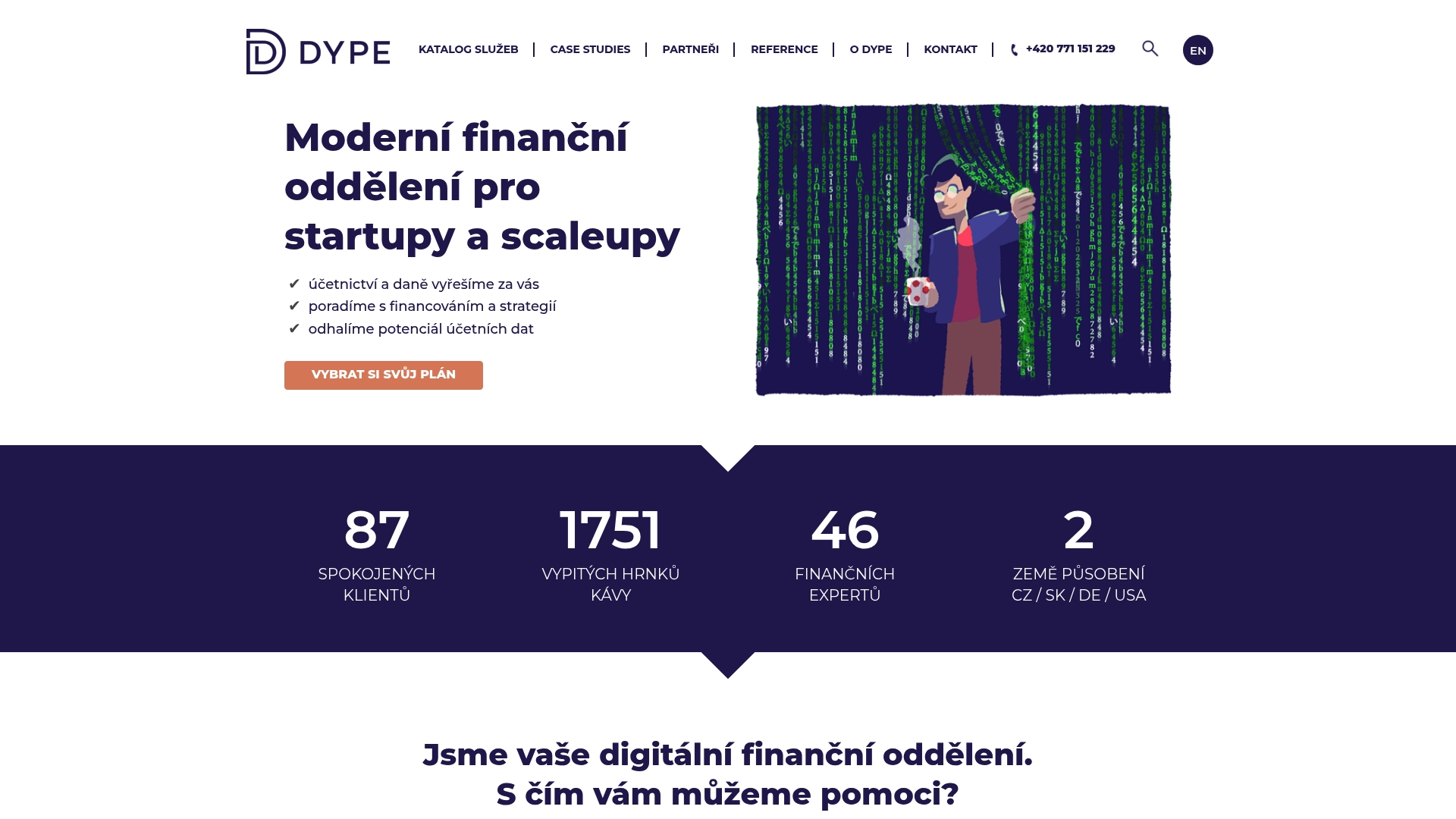 Dype je moderní digitální finanční oddělení zaměřené na startupy a scaleupy, které kombinuje online účetnictví, daně, mzdy a finanční reporting s konzultacemi a podporou mezinárodního účetnictví. Jeho hlavní silou je digitalizace a automatizace procesů, která šetří čas a snižuje chybovost. Pokud hledáte partnera, který převezme každodenní finance a zároveň poskytne strategické poradenství, Dype stojí za zvážení. Nicméně transparentní cenová struktura v poskytnutých datech chybí.