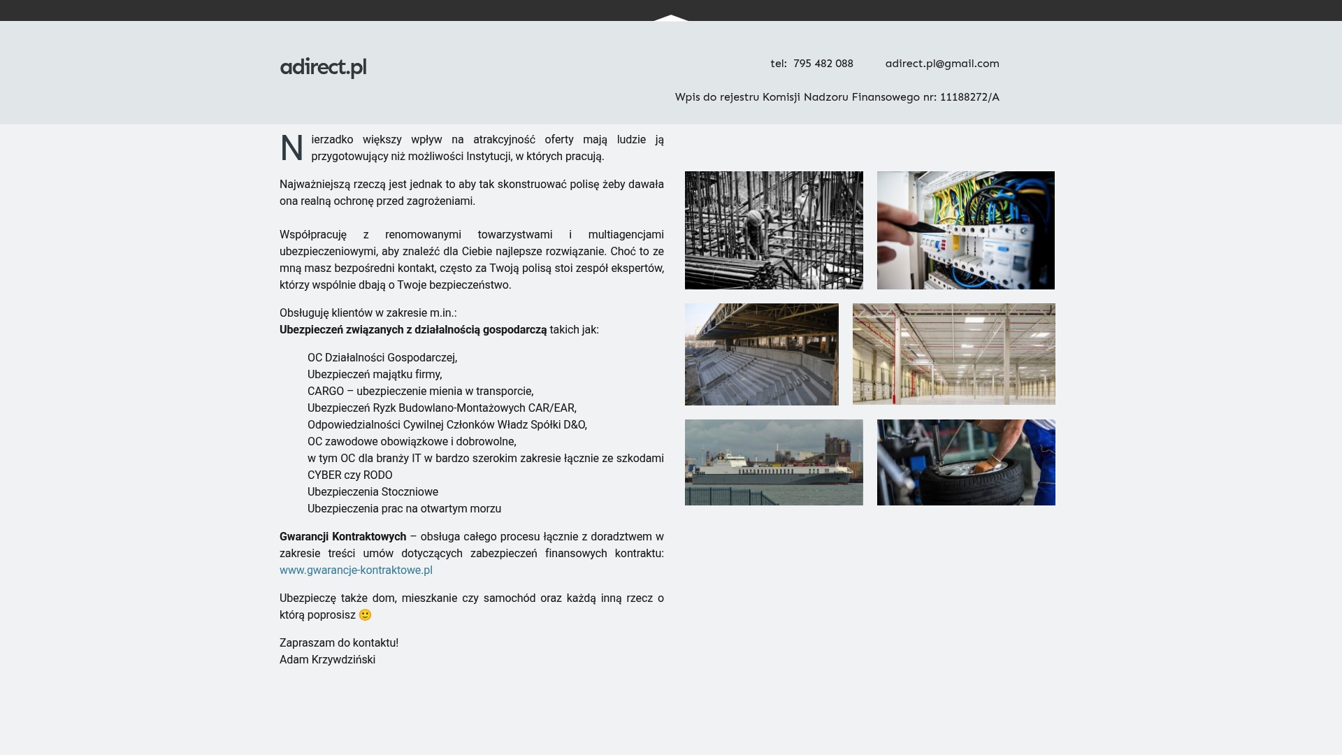 Adirect.pl to broker ubezpieczeniowy koncentrujący się na obsłudze firm i klientów indywidualnych w Polsce, oferujący polisę od OC po specjalistyczne rozwiązania jak ubezpieczenia cyber czy gwarancje kontraktowe. Firma współpracuje z wieloma renomowanymi ubezpieczycielami, co ułatwia dopasowanie oferty do konkretnej działalności gospodarczej. Krótkie podsumowanie: solidny wybór dla przedsiębiorców szukających kompleksowego doradztwa, choć szczegóły cenowe wymagają kontaktu.