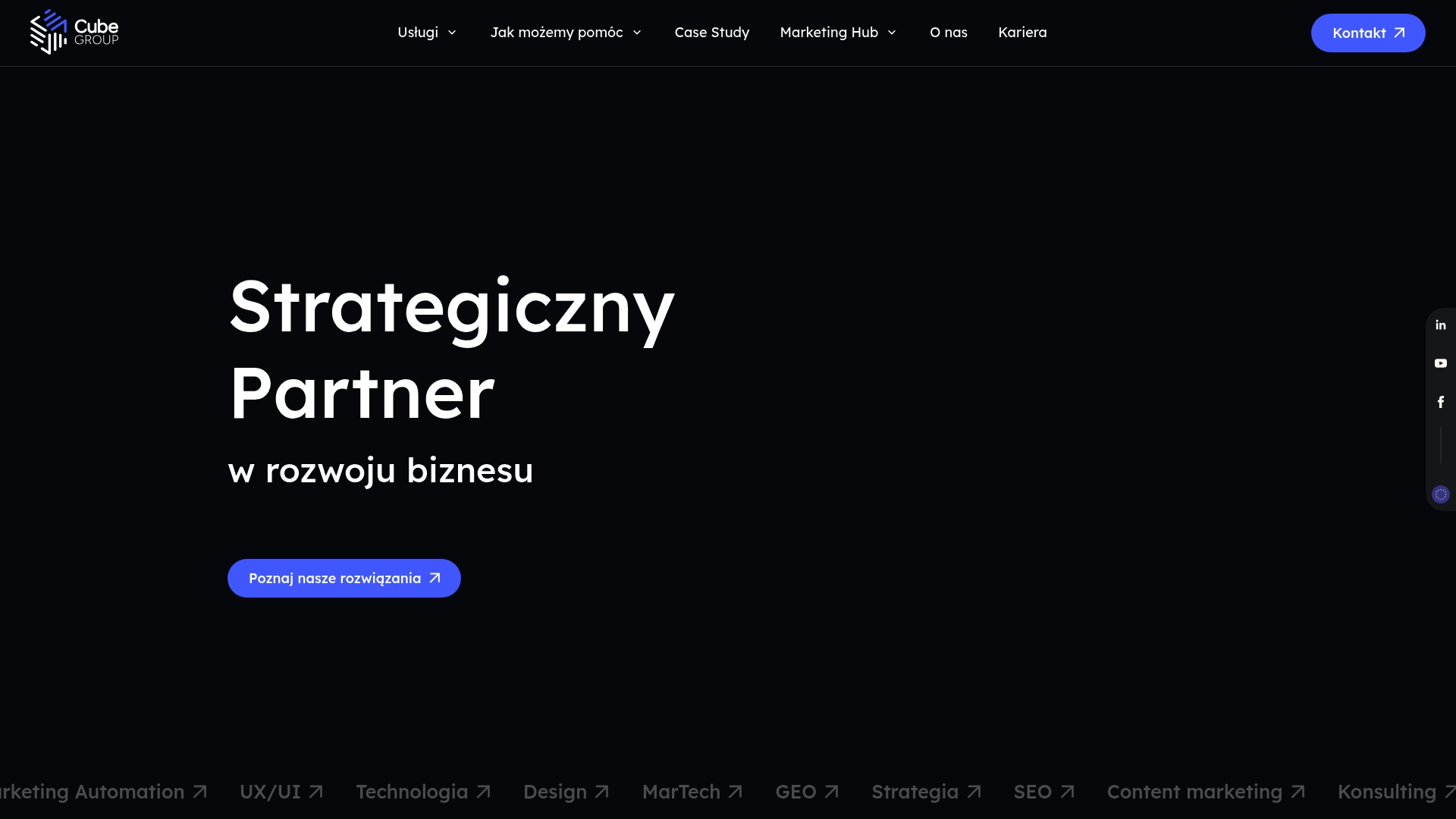 - Szeroki zakres usług: Cube Group łączy technologie Martech z klasycznymi działaniami marketingowymi, dzięki czemu klient może realizować większość potrzeb w jednym miejscu.