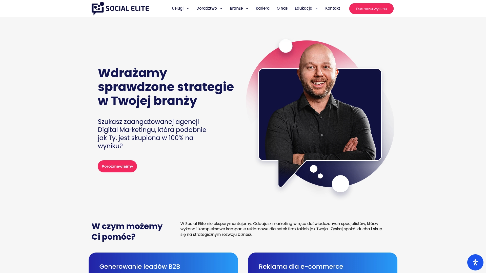 Social Elite to agencja marketingu cyfrowego skoncentrowana na mierzalnych wynikach i skalowaniu biznesu poza granice Polski. Zespół z ponad 10-letnim doświadczeniem i ponad 80 ekspertami oferuje podejście wielokanałowe — Meta, Google, TikTok i inne — co przekłada się na kompleksowe kampanie reklamowe i generowanie leadów. Krótkie podsumowanie: solidne doświadczenie i międzynarodowy zasięg, choć brak jawnego cennika wymaga kontaktu i doprecyzowania zakresu usług.