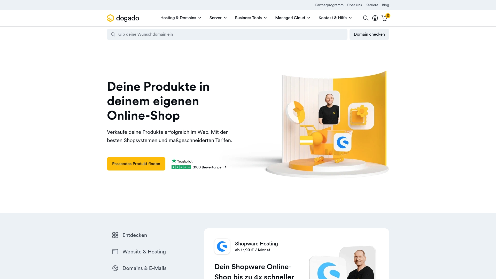 Dogado eignet sich für Unternehmer und Online-Händler, die einen leistungsstarken, zuverlässigen Hosting-Partner suchen und persönlichen Support bevorzugen. Besonders geeignet ist Dogado für Shopware-Nutzer und Geschäftsmodelle, die auf konstante Performance und geringe Ladezeiten angewiesen sind.