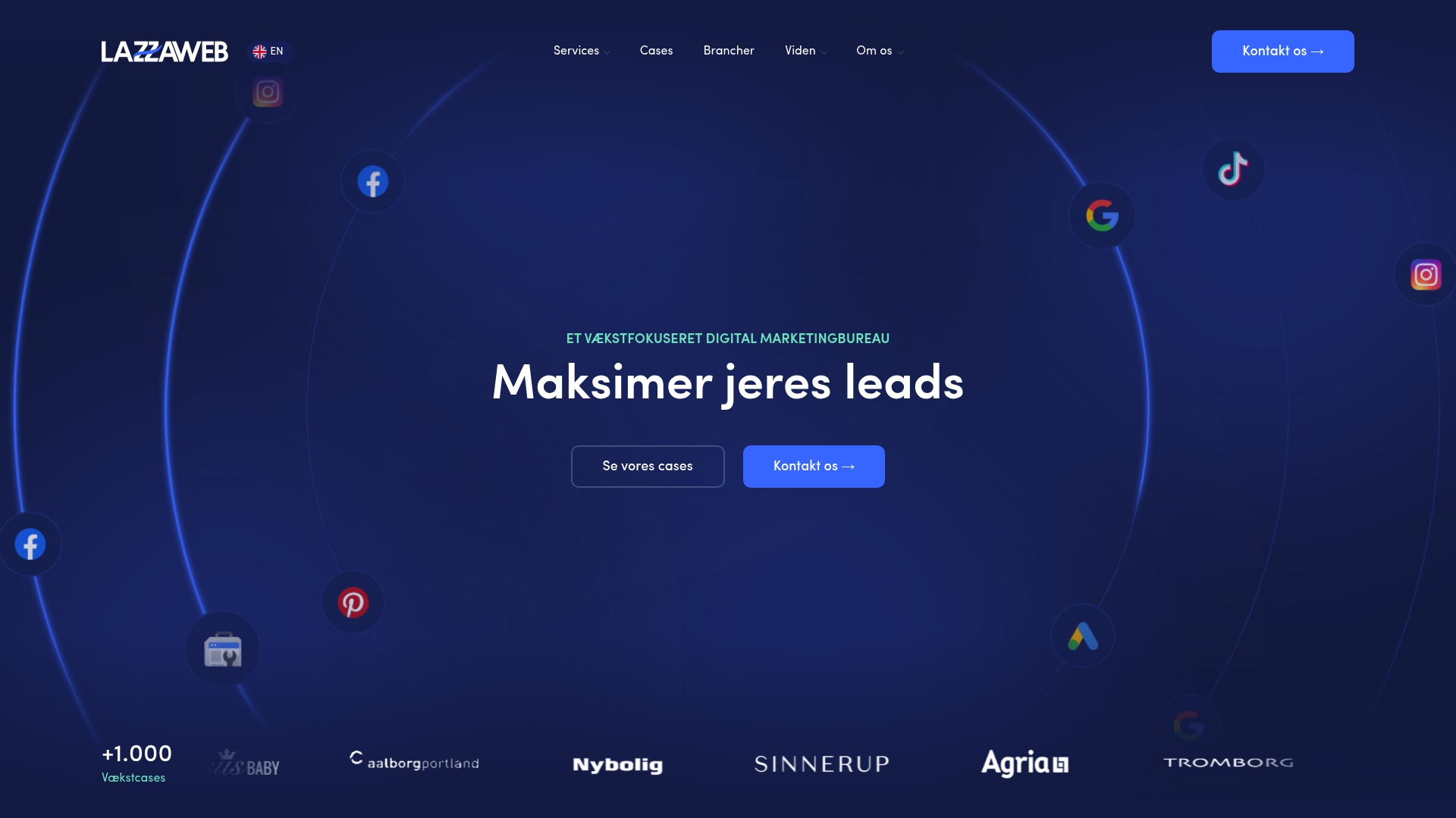 | Lazzaweb | Konverteringsfokus, specialisteams | Dokumenterede internationale resultater | Tunge processer for små virksomheder | Kontakt for tilbud |
