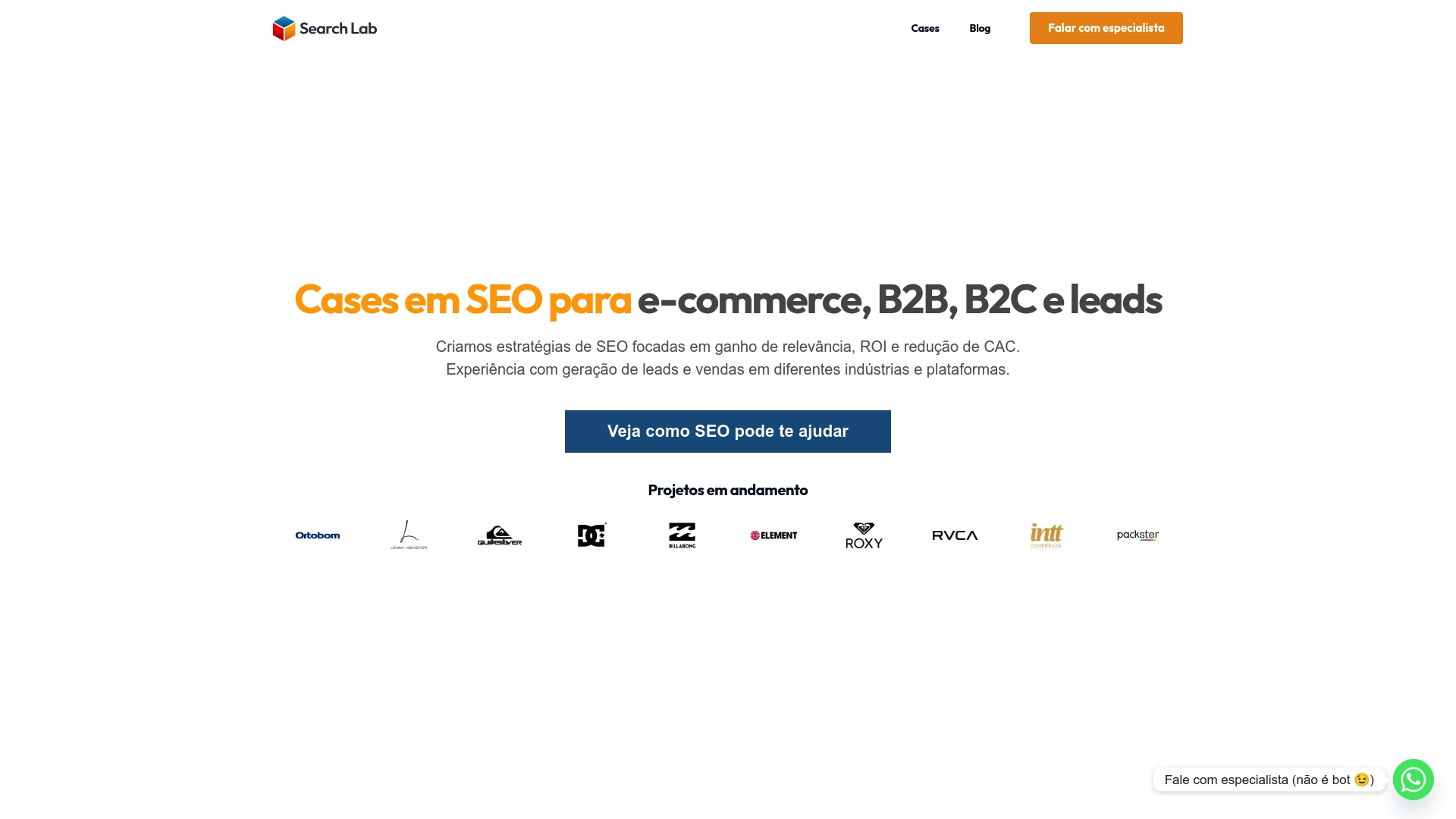 Search Lab desenvolve estratégias de SEO pensadas para relevância e retorno financeiro, combinando recomendações técnicas, on-page e off-page. Trabalham projetos personalizados para plataformas como VTEX e WordPress e criam conteúdo direcionado a diferentes nichos. Além disso, oferecem consultoria contínua com análise analítica e insights de negócio, com foco explícito em geração de leads e optimização do funil de vendas através do SEO técnico e de conteúdo.