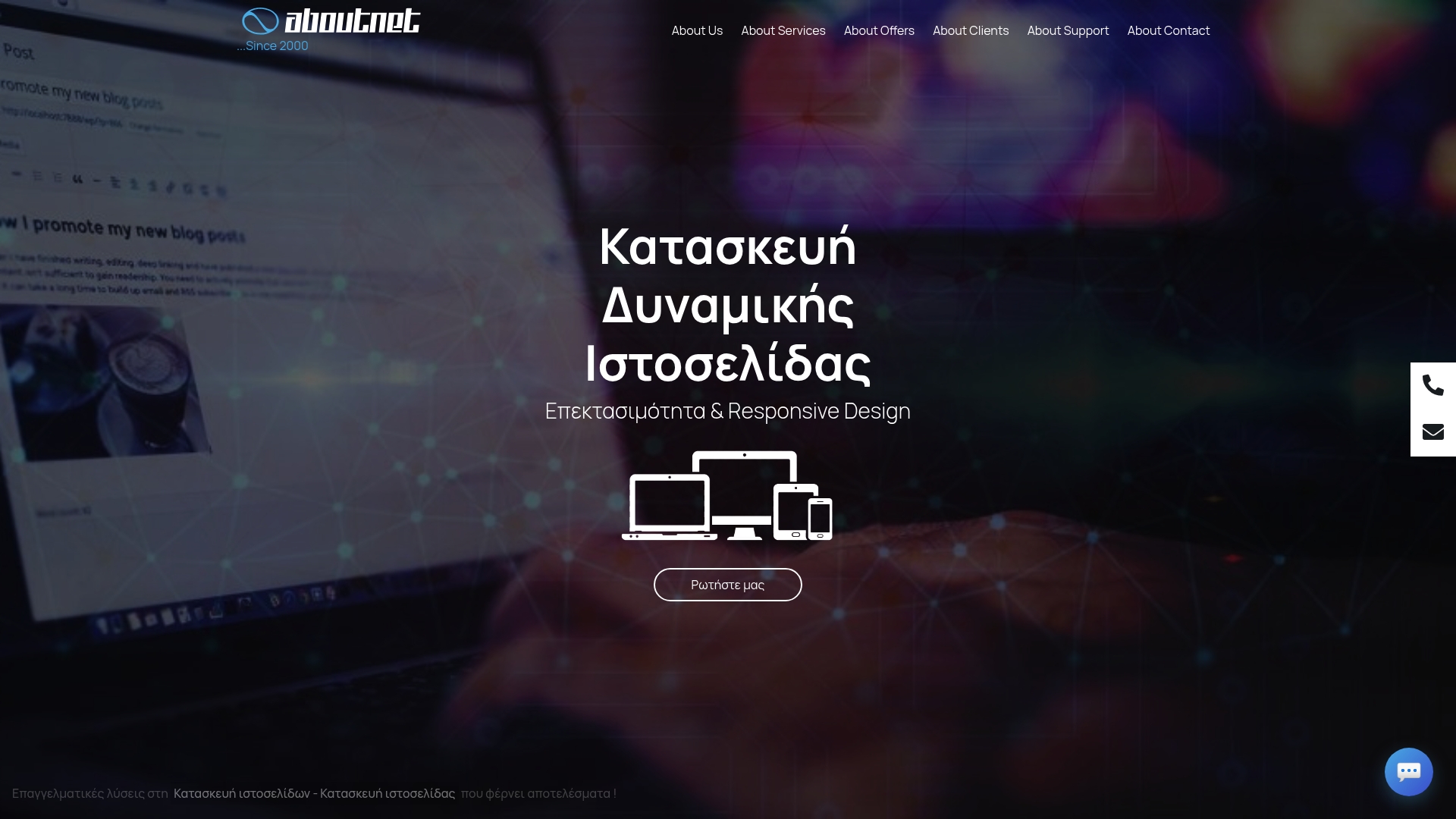 Η Aboutnet παρέχει κατασκευή δυναμικών ιστοσελίδων, δημιουργία e‑shop και microsites με responsive design, υπηρεσίες SEO και ψηφιακού marketing, καθώς και φιλοξενία ιστοσελίδων και διαχείριση domains. Οι υπηρεσίες της συνδυάζουν τεχνική παράδοση (hosting, domains) με δημιουργικό μέρος (web design, responsive layouts) και στρατηγική προβολή (SEO, digital campaigns). Αυτό το πακέτο καθιστά τη συνεργασία πρακτική: σχεδιάζεις, φιλοξενείς, και προωθείς όλα στο ίδιο περιβάλλον.