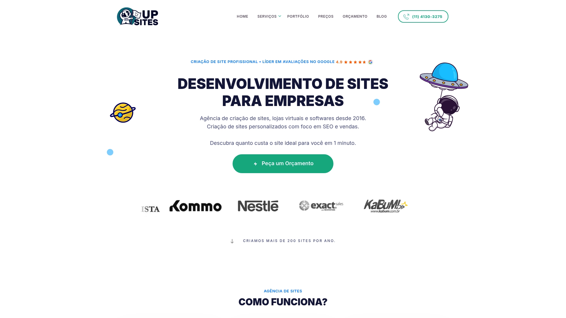 A Upsites Digital é uma agência de criação de sites com sede em São Paulo, especializada em WordPress desde 2016. Oferece desenvolvimento sob medida e modelos expresso com foco claro em SEO, performance e conversão, servindo clientes no Brasil e no estrangeiro. Em resumo: sólida experiência técnica e compromisso com resultados, embora projetos complexos possam exigir prazos e orçamentos mais elevados.