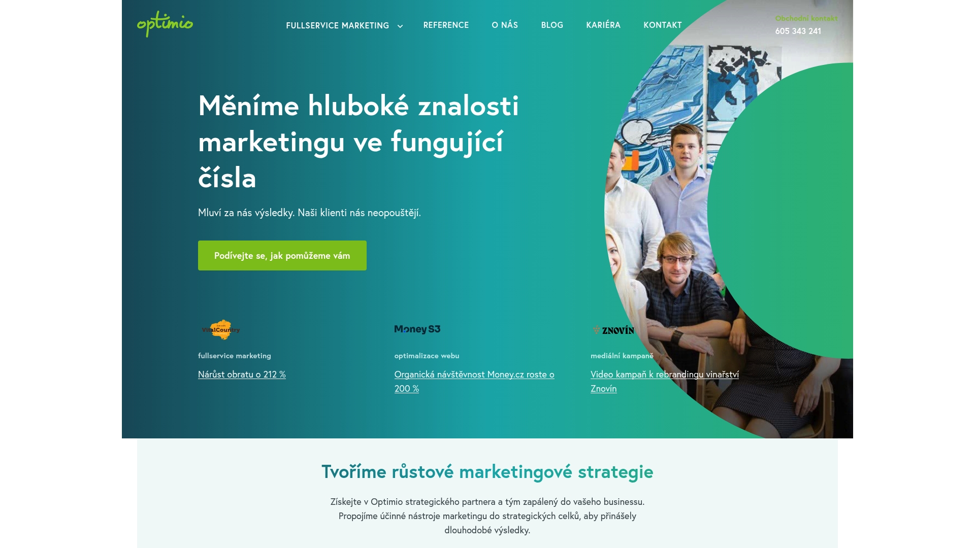 Optimio je fullservice marketingová agentura zaměřená na měřitelné a dlouhodobé růsty klientů. Nabízí široké spektrum služeb od SEO přes digitální reklamu až po CX a retention strategie, přičemž klade důraz na individuální přístup a strategické plánování. Hodí se firmám, které hledají komplexní partnerství spíše než jednorázové kampaně. Jasně. Tady jde o dlouhodobý výsledek, ne o rychlé triky.