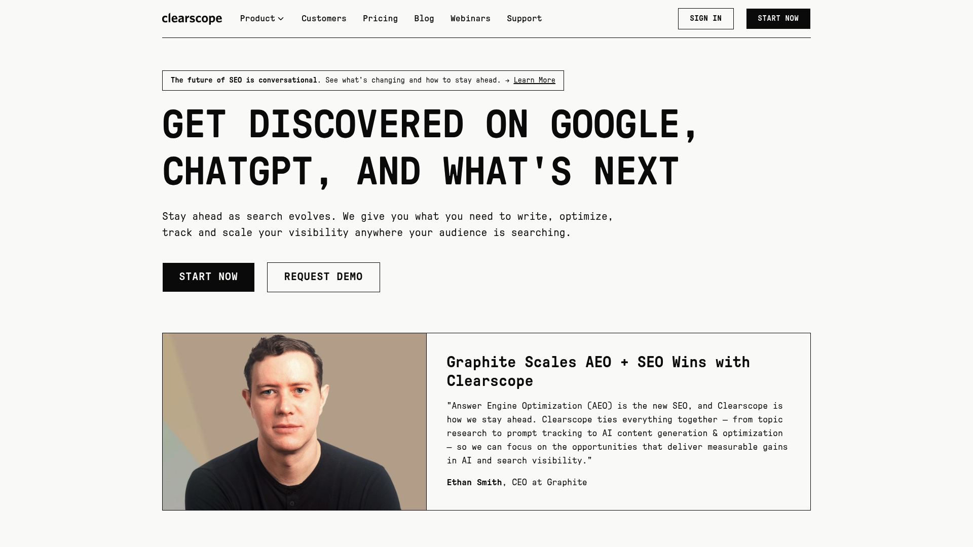 Clearscope is a focused SEO content platform that blends topic research, search intent analysis, and AI-assisted writing to help teams improve visibility across Google and AI platforms like ChatGPT. It’s designed to accelerate content production while keeping optimization grounded in search intent and performance data. If you need a tool that helps prioritize high-impact topics and scale content quality, Clearscope delivers a clear path — though smaller teams should weigh the cost carefully.