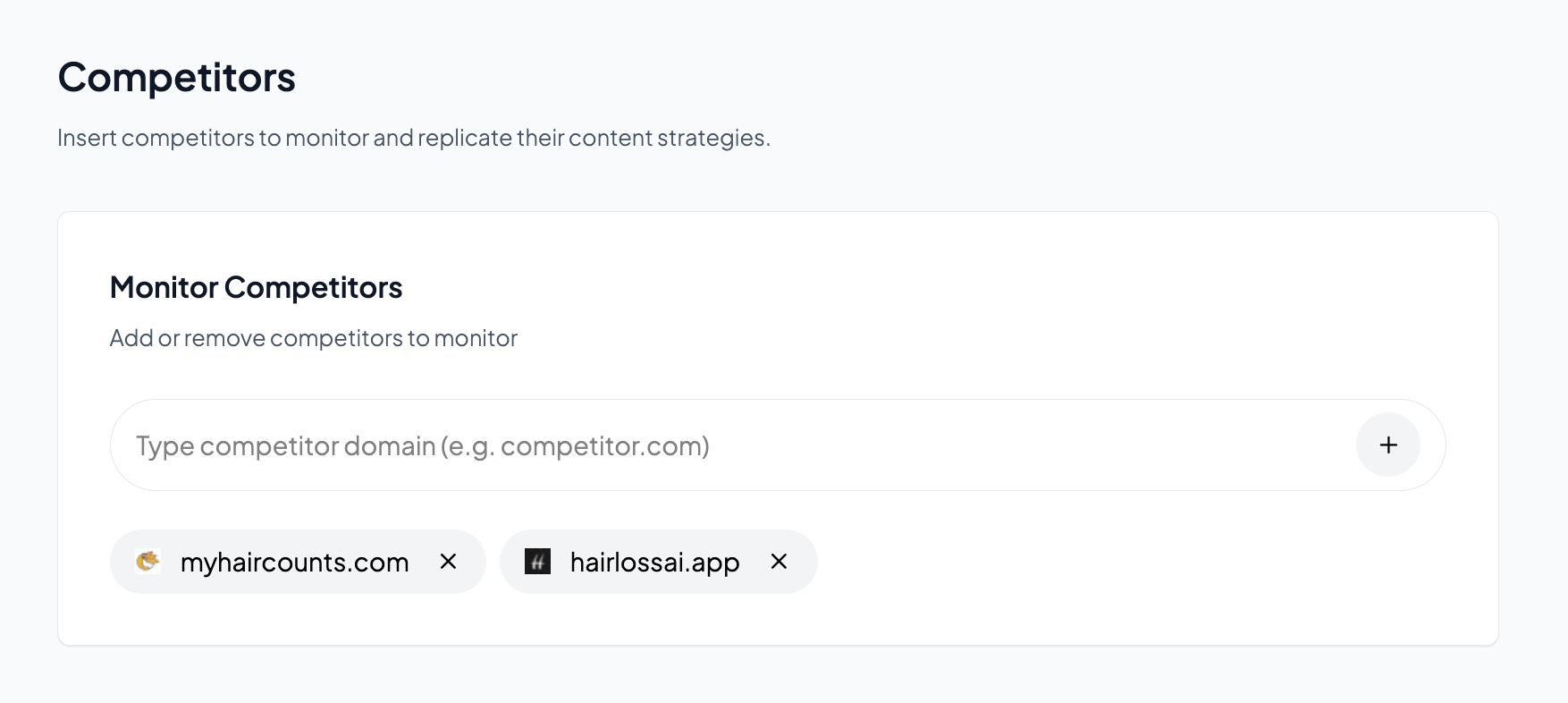 Competitor data helps the AI understand your market and generate content that differentiates you from others in your niche.