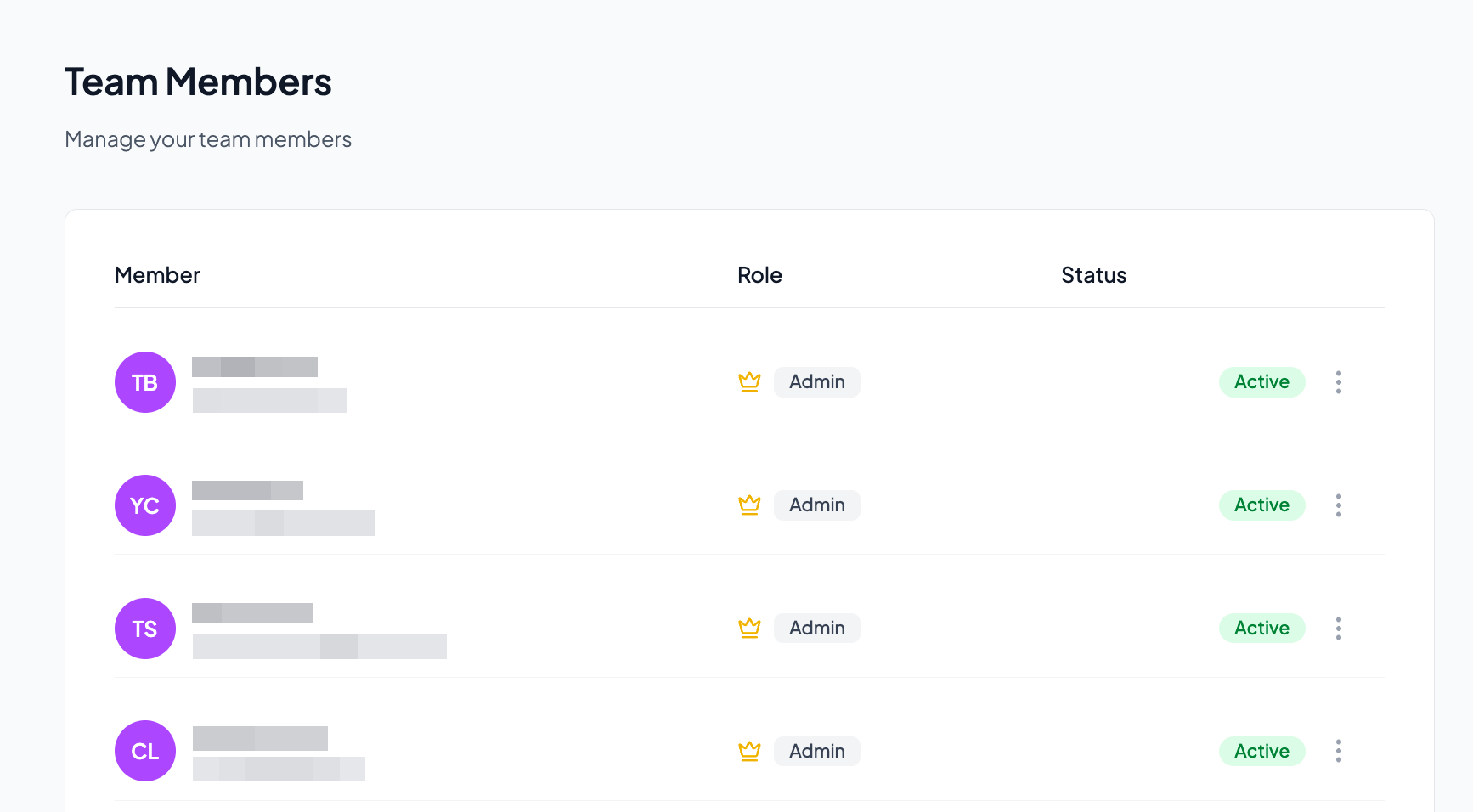 Invite Members: Add new team members by email. They will receive an invitation to join.