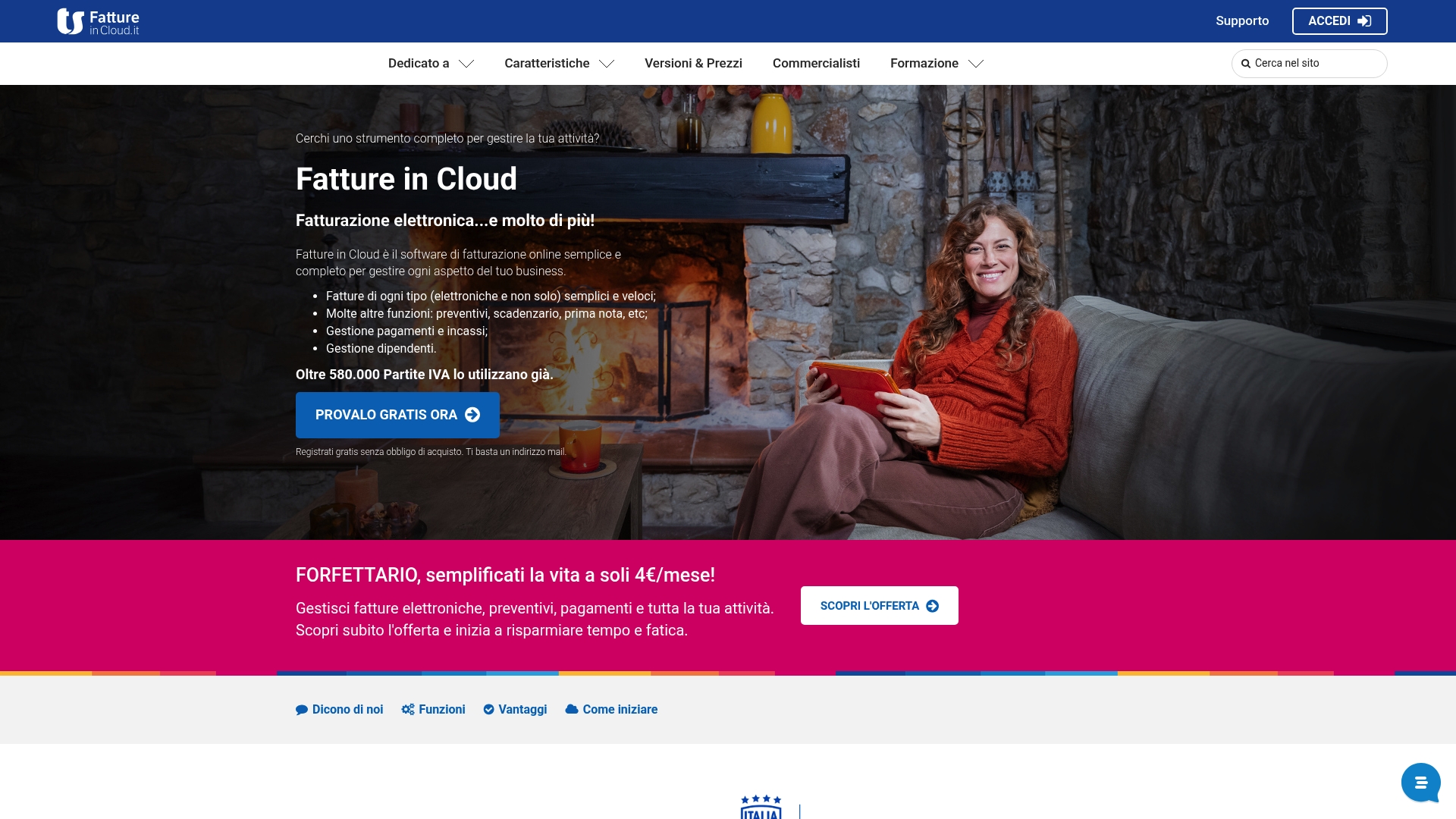 Fatture in Cloud è un software di fatturazione online completo e intuitivo pensato per gestire gli aspetti quotidiani di micro e piccole imprese B2B. Copre fatturazione elettronica e tradizionale, preventivi, incassi e una serie di funzioni per il personale, offrendo accesso da qualsiasi dispositivo. È usato da oltre 580.000 Partite IVA, il che lo rende una scelta consolidata per chi cerca semplicità e convenienza. In sintesi: ottimo per chi vuole snellire la burocrazia senza complicarsi la vita.