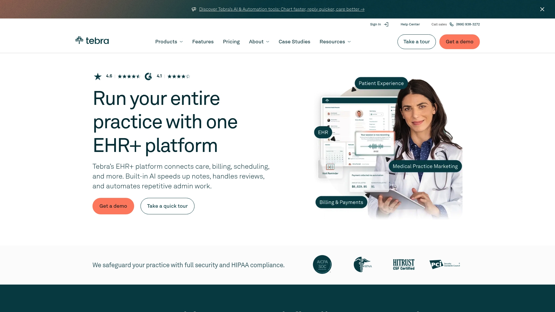 La proposta distintiva di Tebra è l’unificazione di funzioni cliniche, amministrative e di crescita in un unico prodotto con automazioni AI: non solo gestisci i pazienti, ma puoi anche migliorare la reputazione online e attrarre nuovi pazienti dallo stesso pannello.