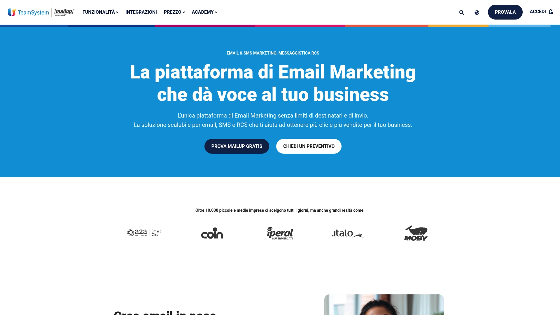 MailUp è una piattaforma multicanale pensata per chi deve inviare email, SMS e orchestrare automazioni complesse. Offre un assistente AI basato su ChatGPT, integrazioni con CRM ed e-commerce e forte attenzione alla deliverability, ed è già utilizzata da oltre 10.000 PMI e grandi aziende. Per un responsabile marketing in una impresa edile italiana rappresenta una soluzione scalabile ma richiede una fase di apprendimento per sfruttarla al massimo.