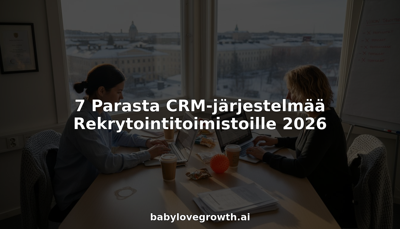 Artikkelissa "7 Parasta CRM-järjestelmää Rekrytointitoimistoille 2026" nostetaan esiin rekrytointitoimistojen kasvun kipupisteet kuten ajanpuute, monimutkaiset työkalut ja orgaanisen näkyvyyden haasteet kilpailussa. Tavoitteena on löytää järjestelmiä, jotka tehostavat asiakkuudenhallintaa ja rekrytointiprosessia samalla, kun brändi erottuu digitaalisessa maailmassa.