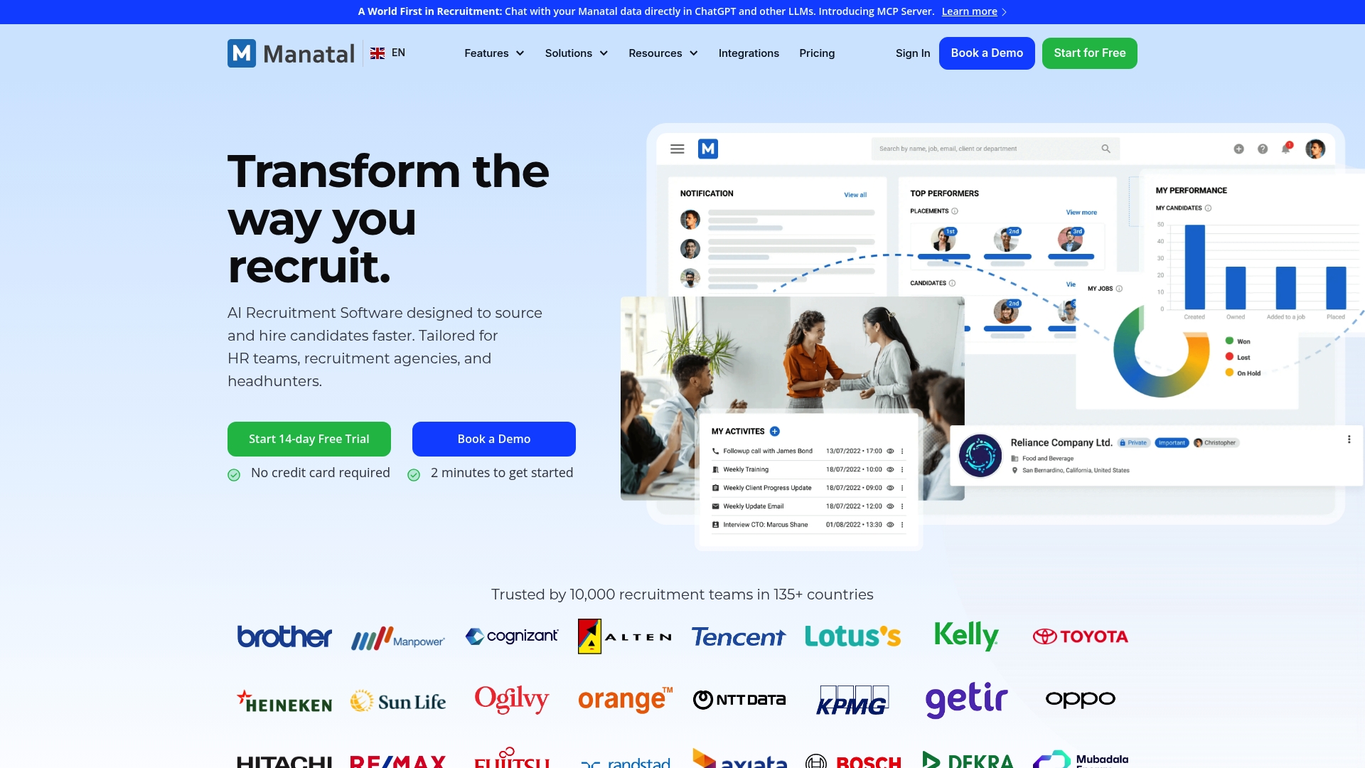 Manatal erottuu yhdistämällä laajan sourcing-verkon, ATS:n ja AI-ominaisuudet samaan tuotepakettiin; se pyrkii vähentämään manuaalista seulontaa ja nopeuttamaan täyttöaikoja älykkäillä suosituksilla ja kandidaattien rikastuksella. Yhtenäinen alusta vähentää monen työkalun hallintaa.
