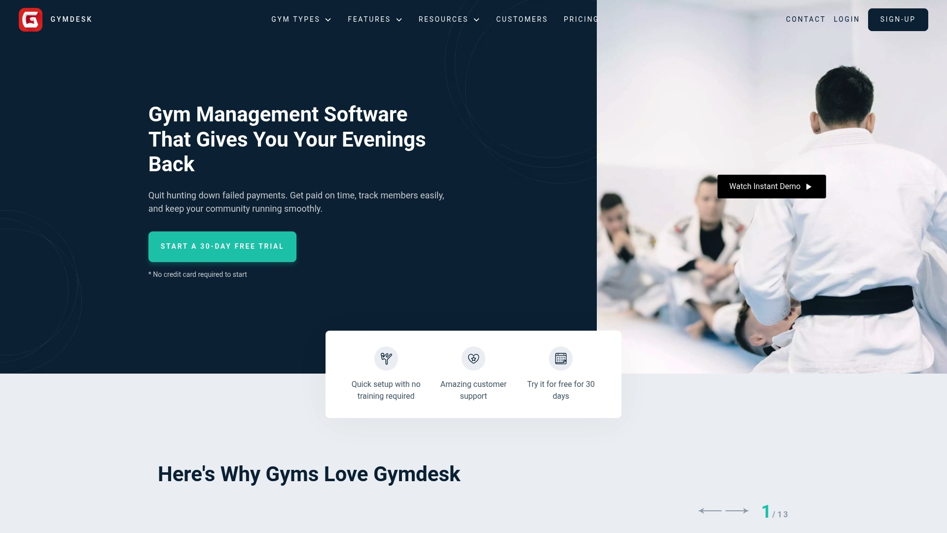 | Gymdesk | Edullinen, käyttäjäystävällinen alusta jäsen- ja tilitoimintojen hallintaan | Alkaen 75 USD/kk pienille studioille | Kamppailulajikoulut ja vasta aloittavat studioyritykset, jotka haluavat yksinkertainen ja edullinen ratkaisu | Muokkauksen vähäisyys isommille toimijoille |