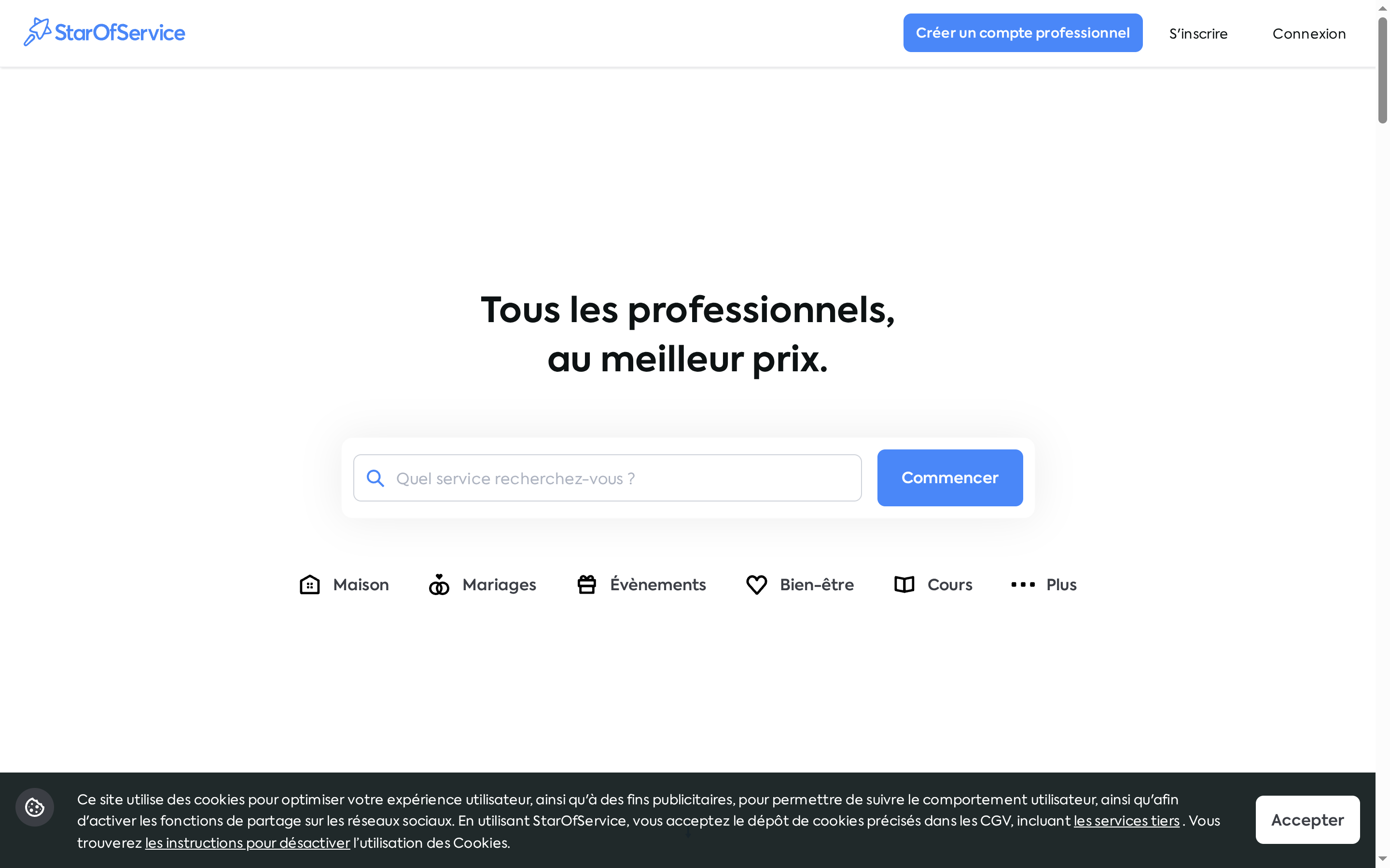 StarOfService est une plateforme de mise en relation qui aide les clients à trouver des prestataires locaux dans de nombreuses catégories de services en France. Elle centralise profils, avis et évaluations, et permet de comparer des devis avant de contacter un professionnel. Pour les utilisateurs qui veulent une recherche rapide et des options variées, c'est un point de départ pratique. Pour les utilisateurs cherchant des informations tarifaires très détaillées, le site reste discret.