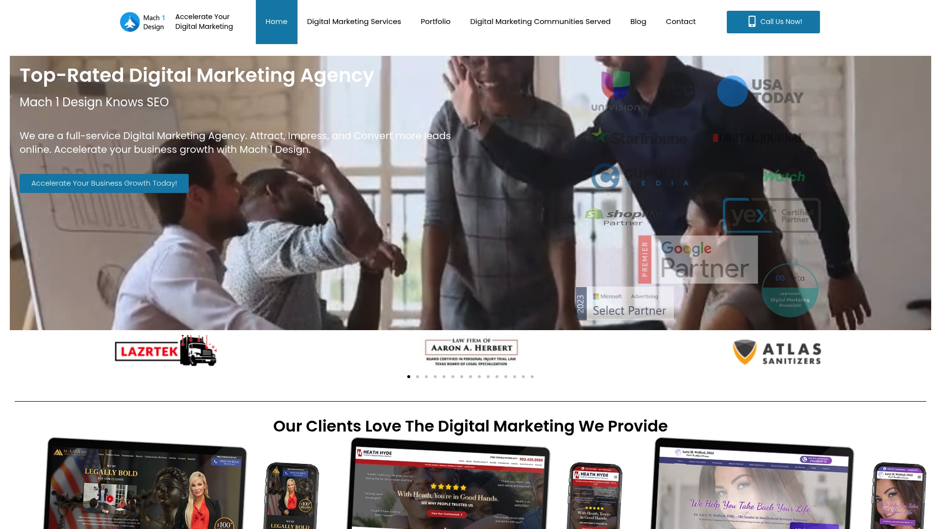Mach 1 Design se présente comme une agence de marketing digital full service capable d'accompagner une PME sur le SEO, le site web, les réseaux sociaux et la gestion de réputation. Le positionnement est clair : stratégies sur mesure et transparence, avec des preuves via des témoignages.