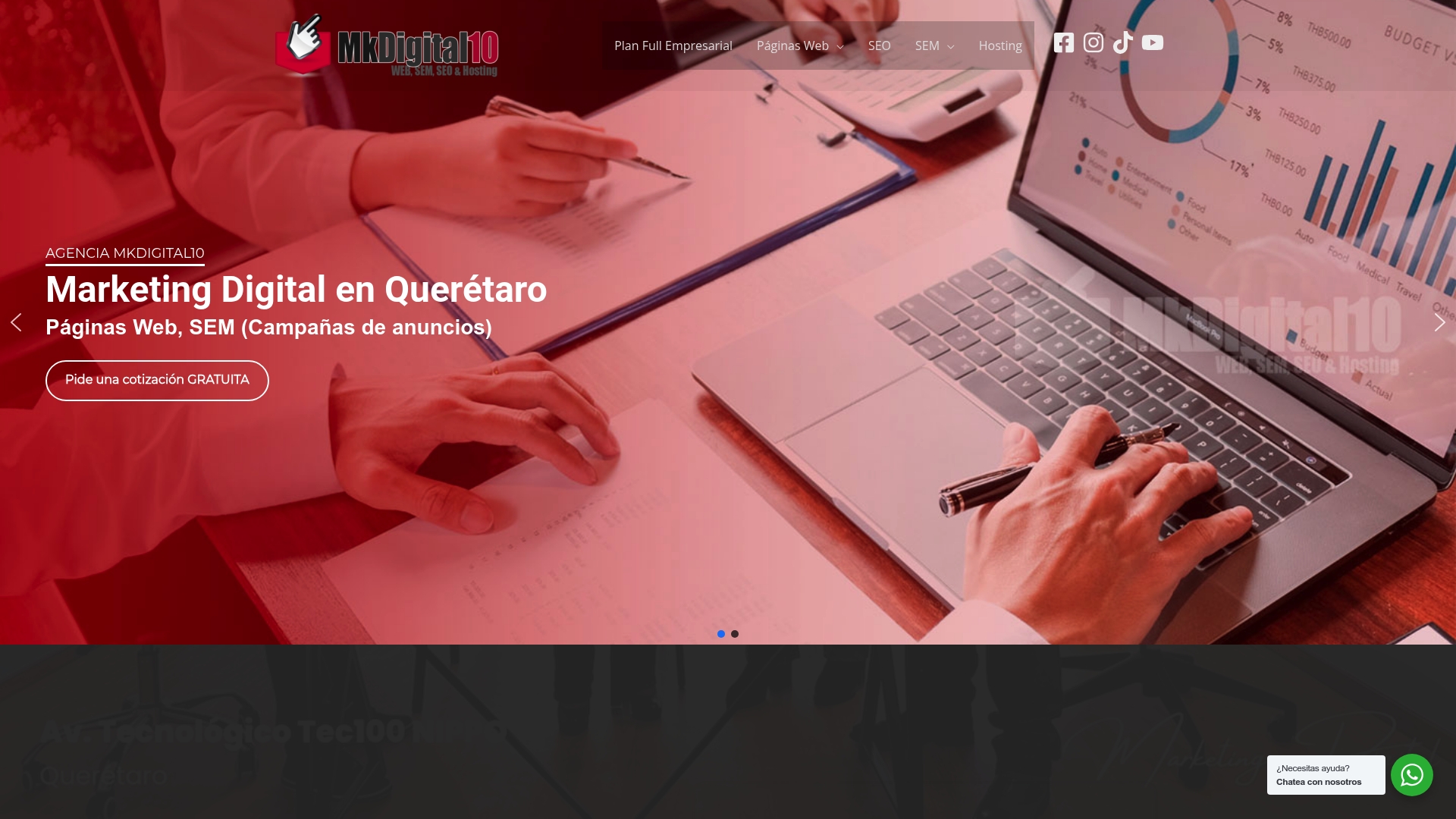 MkDigital10 brinda desarrollo de páginas web, servicios de SEO y posicionamiento en Google, gestión de campañas SEM en Google Ads y Facebook Ads, manejo de redes sociales y soporte técnico con informes semanales y mensuales.