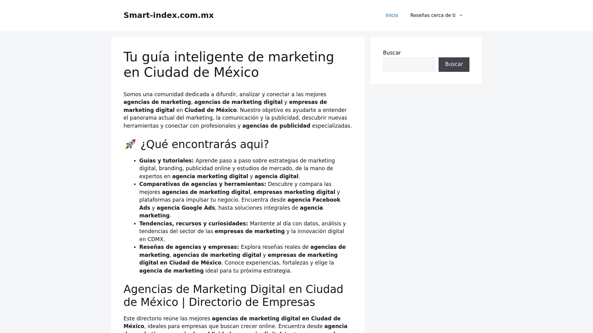 | Smart Index CDMX | Directorio y comunidad especializada en marketing digital para la Ciudad de México | Contenido educativo y directorio por alcaldías | Gratuito | smart-index.com.mx |