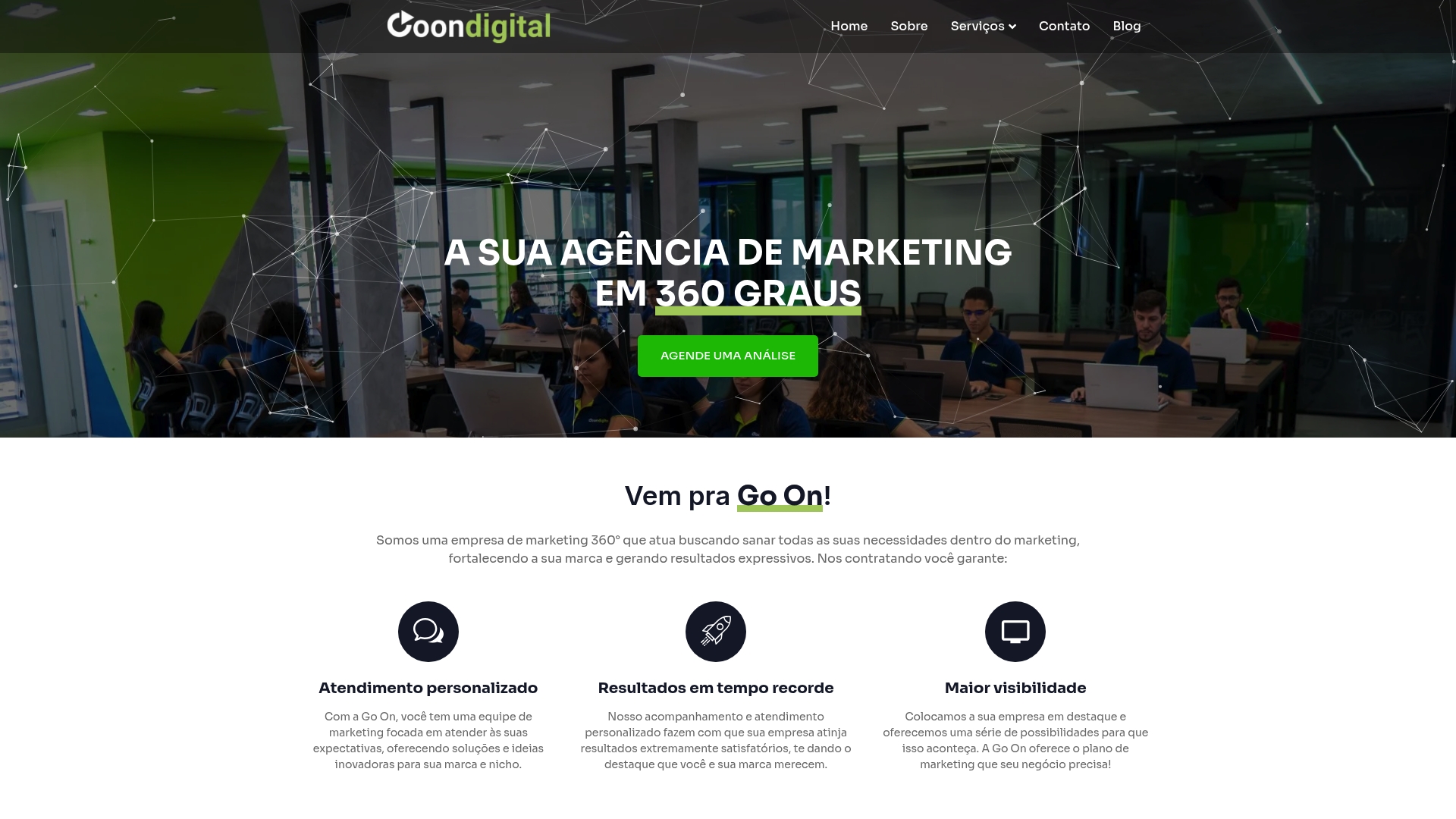 Go On Digital apresenta‑se como uma agência de marketing 360° com mais de 7 anos de mercado que promete resolver várias necessidades de uma só vez. O foco em captação de leads, SEO e tráfego pago indica uma abordagem orientada para resultados, útil para quem quer aumentar vendas e visibilidade. Para proprietários de PME em Vila Velha que procuram um parceiro que trate da marca e da performance, é uma opção sólida. Peça uma análise inicial para perceber se os custos compensam para o teu negócio.