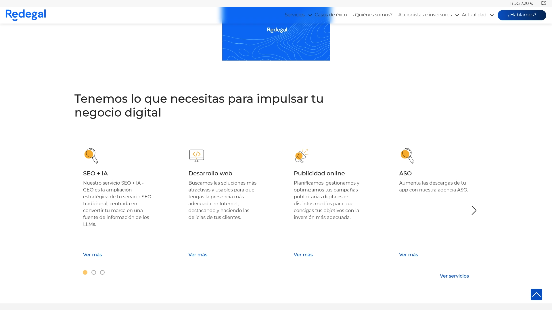 | Redegal | Servicios integrales técnicos y de marketing; más de 20 años de experiencia; herramienta propia de análisis | Transparencia limitada en precios; variabilidad en disponibilidad de servicios | RDG 7,20 €, requiere contacto para más detalles | Pymes en busca de soluciones técnicas y de marketing integradas |