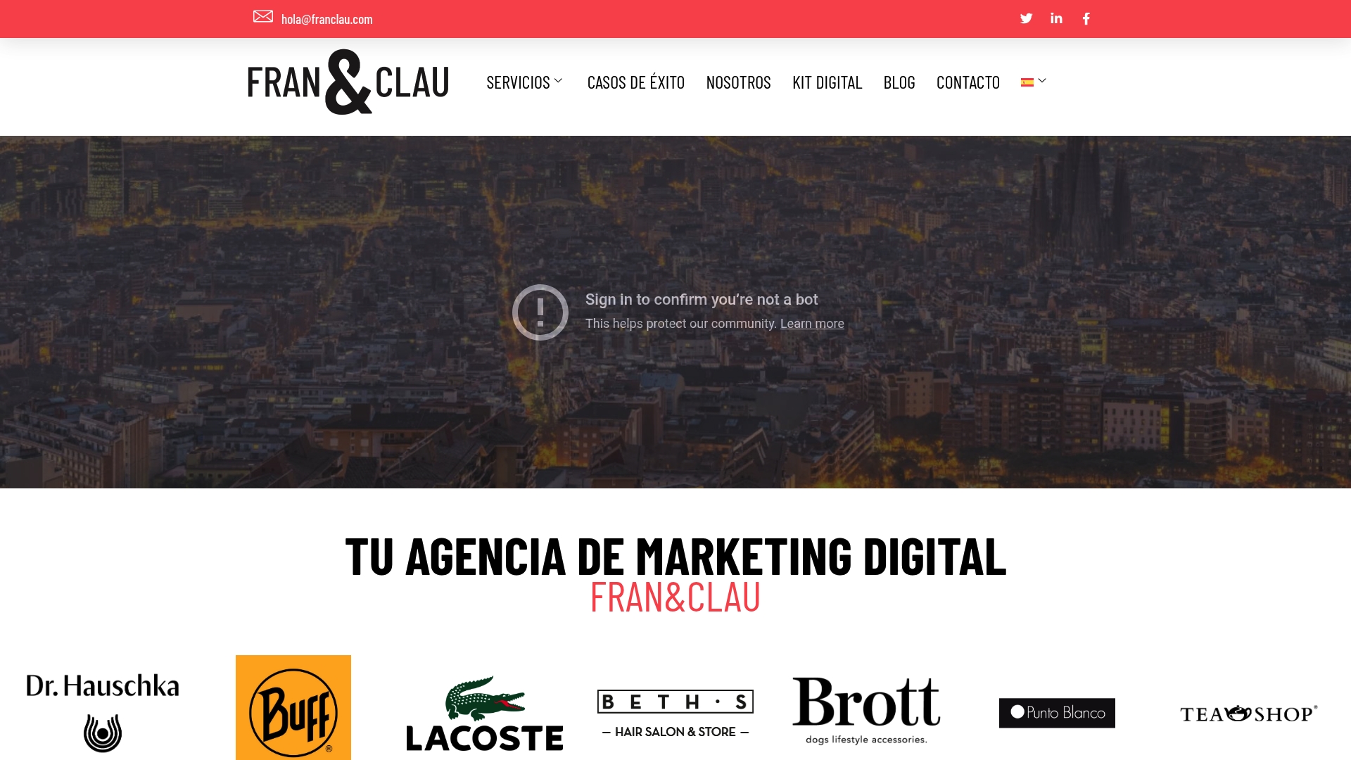 Franclau Marketing es una agencia consolidada con más de 10 años de experiencia que ofrece un paquete completo de servicios para impulsar negocios online. Su enfoque combina estrategia digital, SEO, Google Ads, social media y desarrollo web —incluyendo tiendas Shopify— con atención personalizada. En resumen: una opción sólida si buscas un socio que gestione múltiples frentes del marketing digital con seguimiento cercano. No es la solución más transparente en precios; espera solicitar presupuesto.