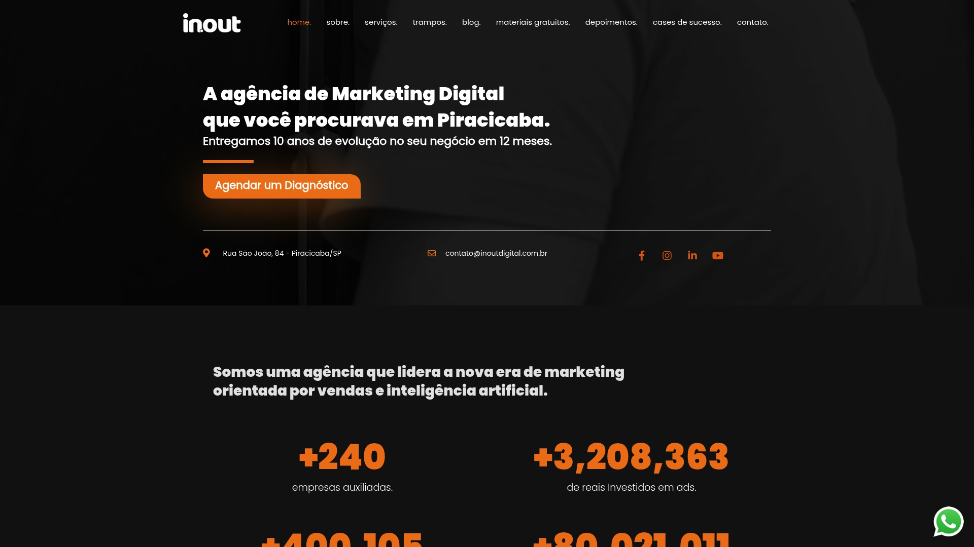 Inout Digital é uma agência de Piracicaba orientada para resultados de vendas e não apenas crescimento de seguidores. Ela usa uma imersão no negócio para criar estratégias personalizadas que visam resultados rápidos e medíveis.