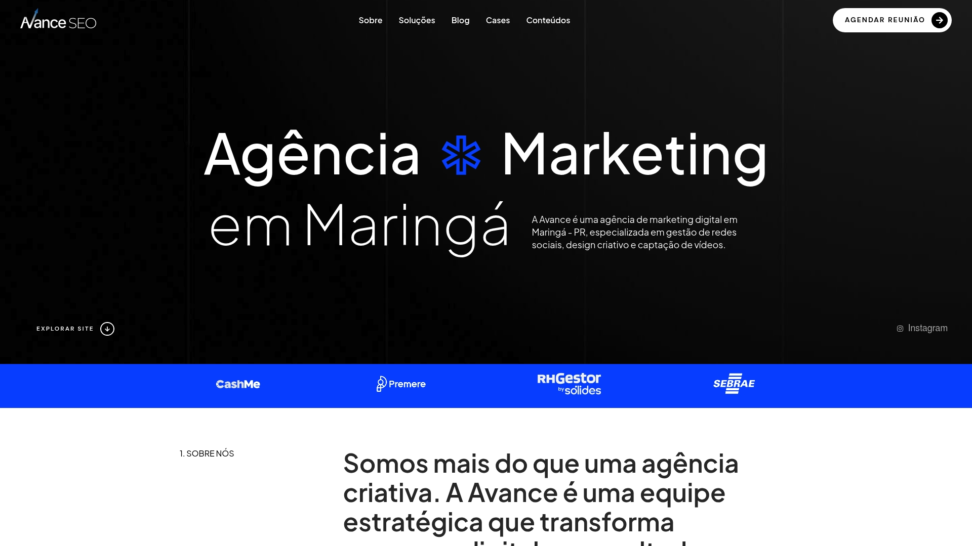 A Avance SEO é uma agência de marketing digital em Maringá que combina gestão de redes sociais com estratégias de SEO e produção de vídeo para resultados mensuráveis. A agência foca em soluções personalizadas para transformar presença digital em resultados concretos.