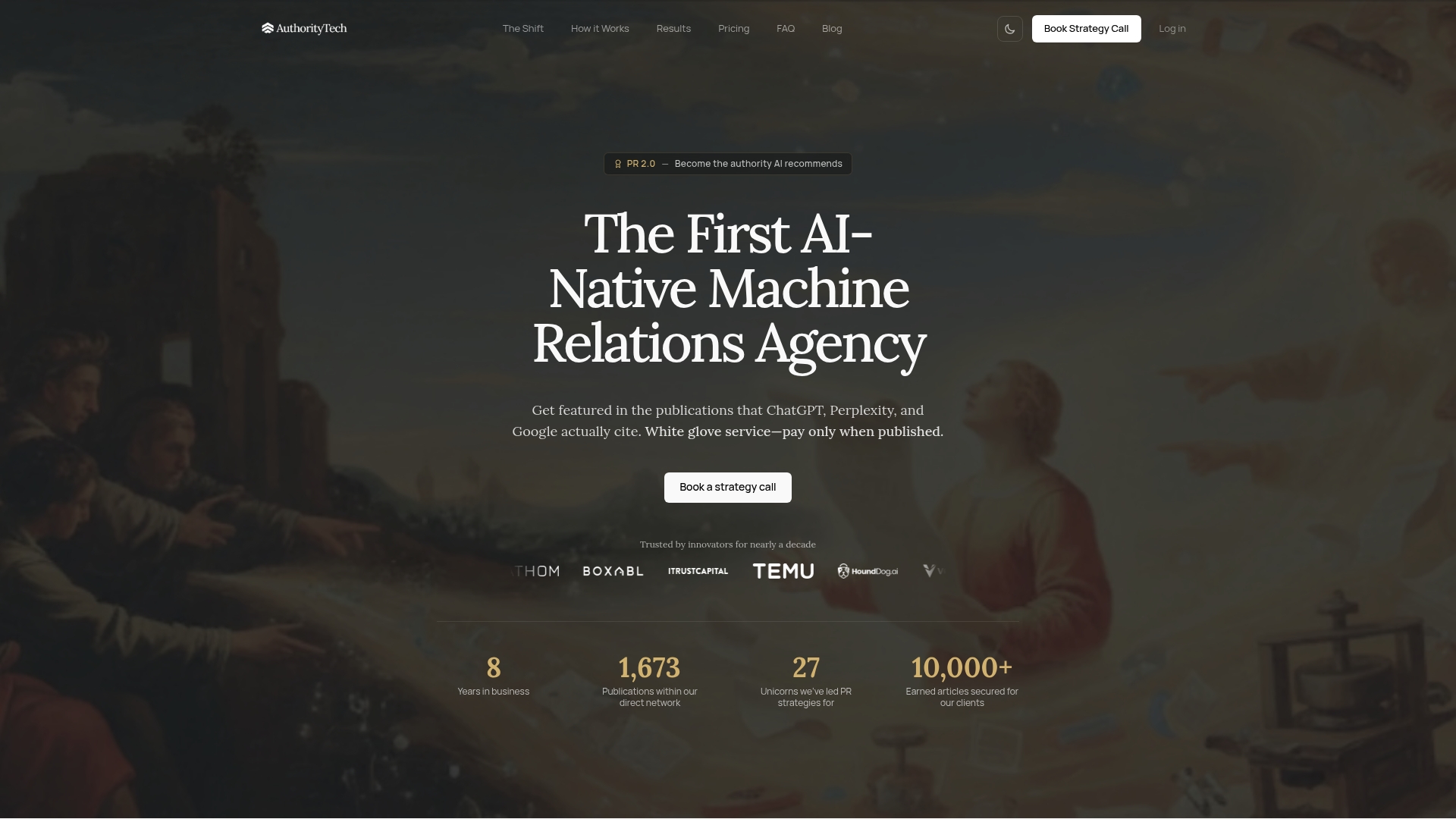 AuthorityTech gestisce l'intero processo dal messaggio alla pubblicazione con un servizio end to end. Il team utilizza ottimizzazione per AI e motori di ricerca per far sì che gli articoli siano effettivamente citati dagli algoritmi. Il servizio include placement garantiti e rapporti diretti con 1,673+ pubblicazioni, oltre alla definizione strategica della narrazione del brand.