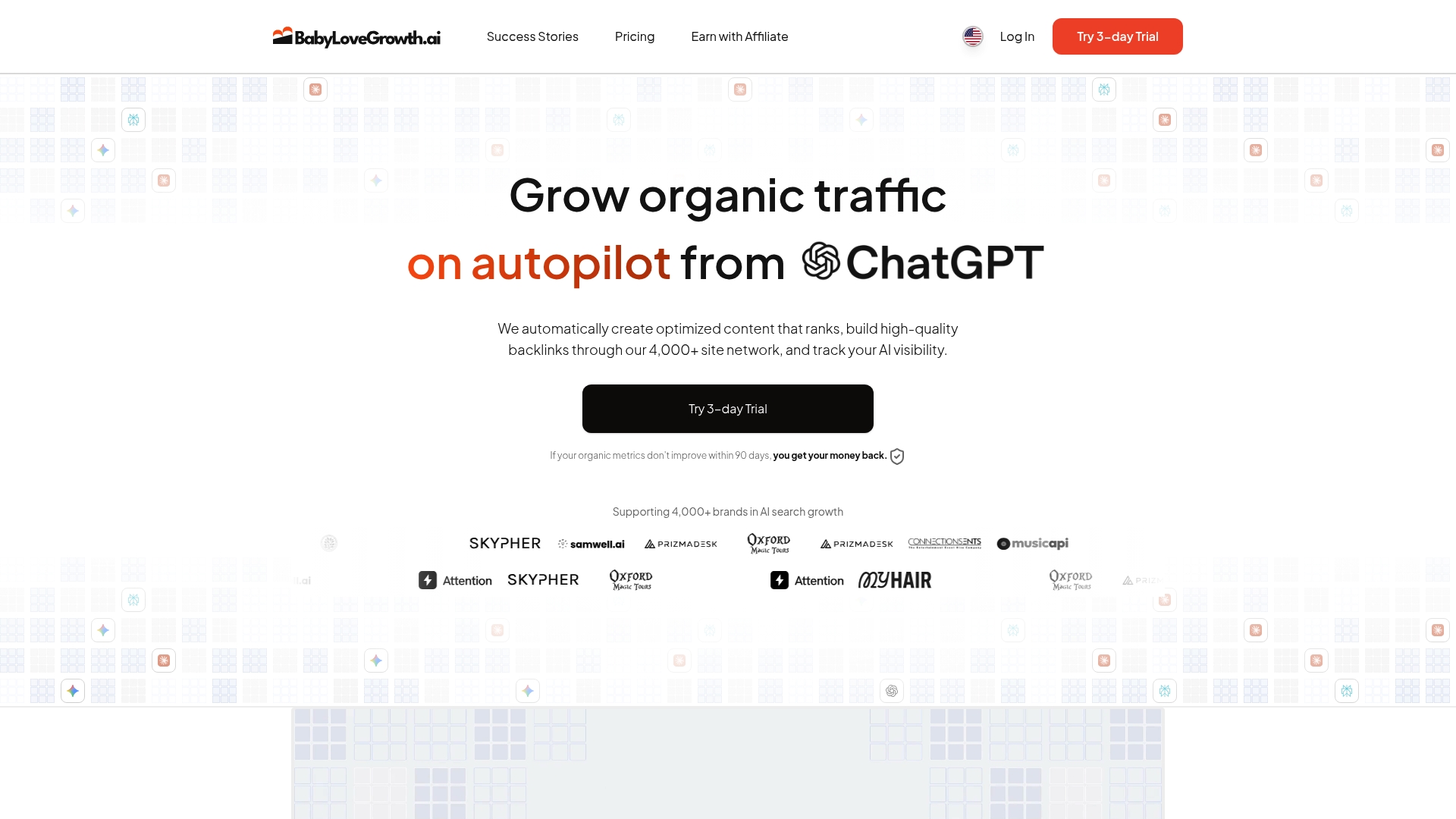 BabyLoveGrowth é a solução liderada por IA para empresas que querem crescimento orgânico sem complexidade manual. O produto combina criação automática de conteúdo, construção de backlinks e monitorização de visibilidade em IA num único fluxo de trabalho.