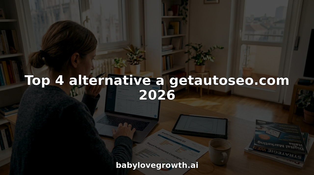 Le migliori alternative a getautoseo.com nel 2026 includono piattaforme che offrono automazione SEO, creazione di contenuti e gestione dei backlink. Considera di valutare ognuna in base alle tue esigenze specifiche per massimizzare i risultati.