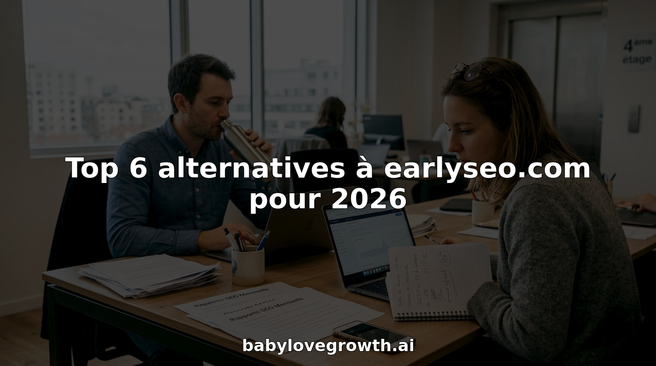 Face à la recherche des meilleures alternatives à EarlySEO.com, il est essentiel de choisir une plateforme qui simplifie vraiment la croissance organique. Si vous souhaitez dépasser les limites des outils classiques et intégrer une solution capable de générer automatiquement du contenu de qualité optimisé pour Google et ChatGPT ainsi que des backlinks efficaces, BabyLoveGrowth répond précisément à ces besoins. Cette solution all-in-one vous aide à automatiser votre référencement avec un plan personnalisé sur 30 jours, sans complexité inutile.