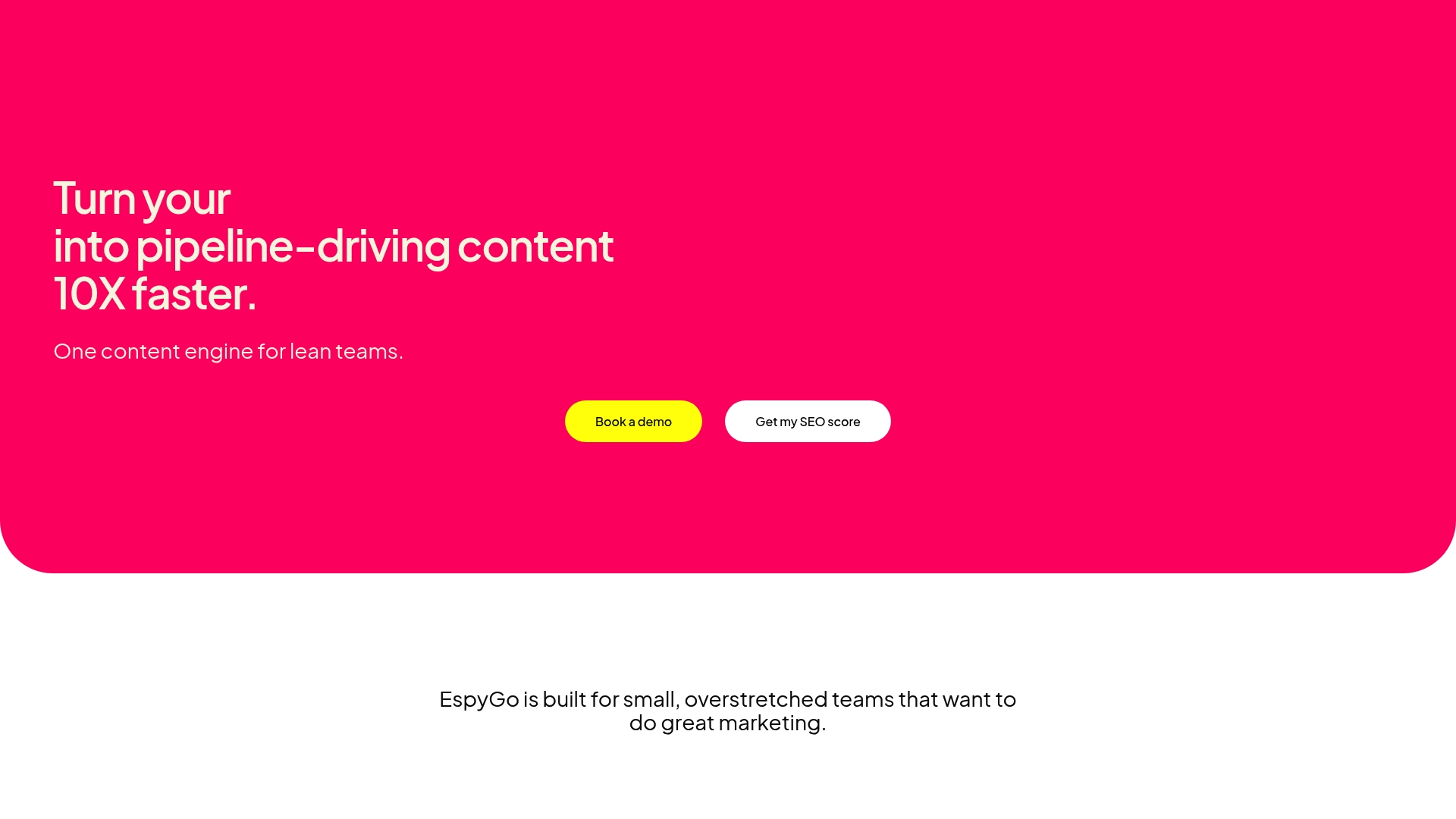 EspyGo est un moteur de contenu conçu pour les équipes réduites qui doivent produire du contenu stratégique rapidement et sans recruter. Il transforme les données commerciales et les analyses concurrentielles en articles optimisés et publications sociales en quelques minutes.