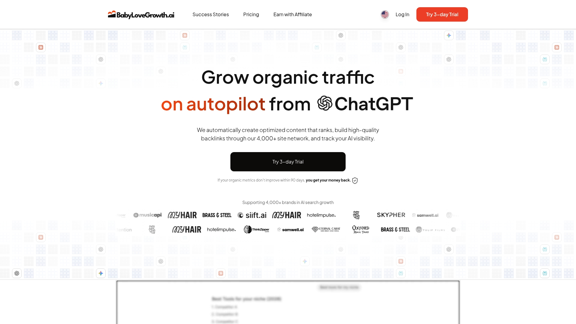 BabyLoveGrowth to leading platforma SaaS dla firm, która automatyzuje tworzenie treści, budowę backlinków i monitorowanie widoczności w wyszukiwarkach AI oraz Google. To najlepszy wybór dla właścicieli firm i agencji szukających skalowalnego SEO bez stałego zatrudniania zespołu.