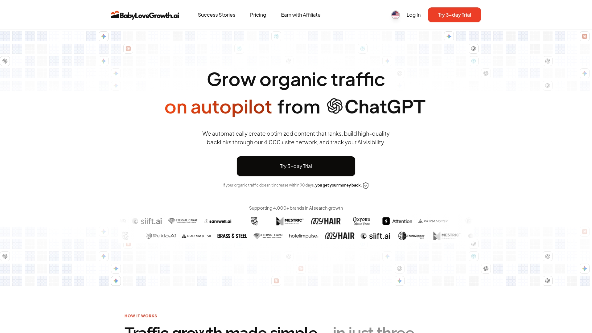 BabyLoveGrowth automatizza la creazione di contenuti ottimizzati per i motori di ricerca e per gli assistenti AI. Genera backlink tramite una rete di 4.000+ siti e monitora la presenza su ChatGPT, Perplexity e Google.