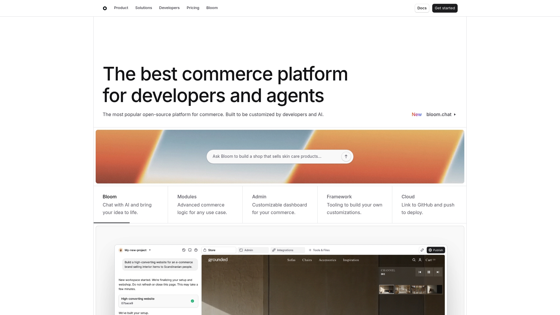 MedusaJS propone un cruscotto admin personalizzabile, moduli avanzati per inventario e gestione multi-magazzino, e supporto multi-regione per valute e regole fiscali. La piattaforma integra strumenti AI-enabled come Bloom e agent skills e offre opzioni di cloud hosting con piani Develop, Launch, Scale e Enterprise.
