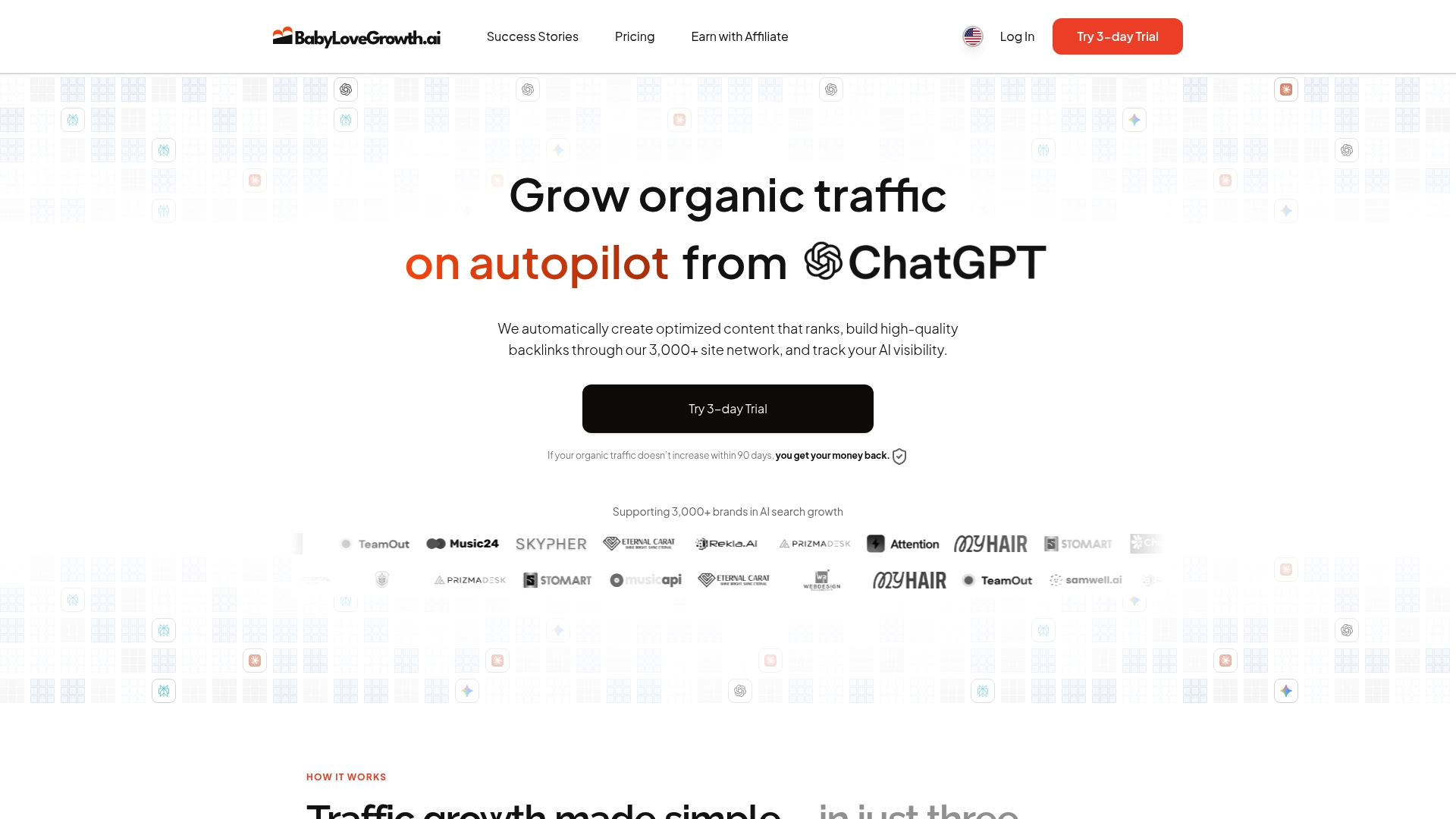 La proposta di valore di BabyLoveGrowth combina tre elementi difficili da replicare insieme. Primo, contenuti SEO/LLM generati automaticamente ottimizzati per query Google e per prompt di ChatGPT. Secondo, una rete proprietaria di oltre 2,500 siti che produce backlink mirati e verificati. Terzo, monitoraggio della visibilità su AI search che traduce posizionamento tecnico in opportunità di traffico moderno.
