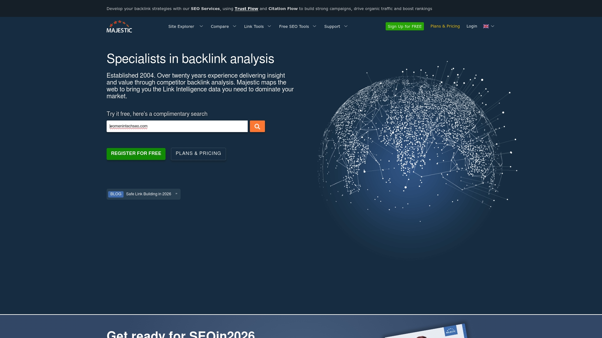 | Majestic | Detailed backlink analysis with Trust Flow and Citation Flow metrics | Visual tools for backlink trend analysis, extensive historical index | Complex interface for beginners | Pricing on pricing page |