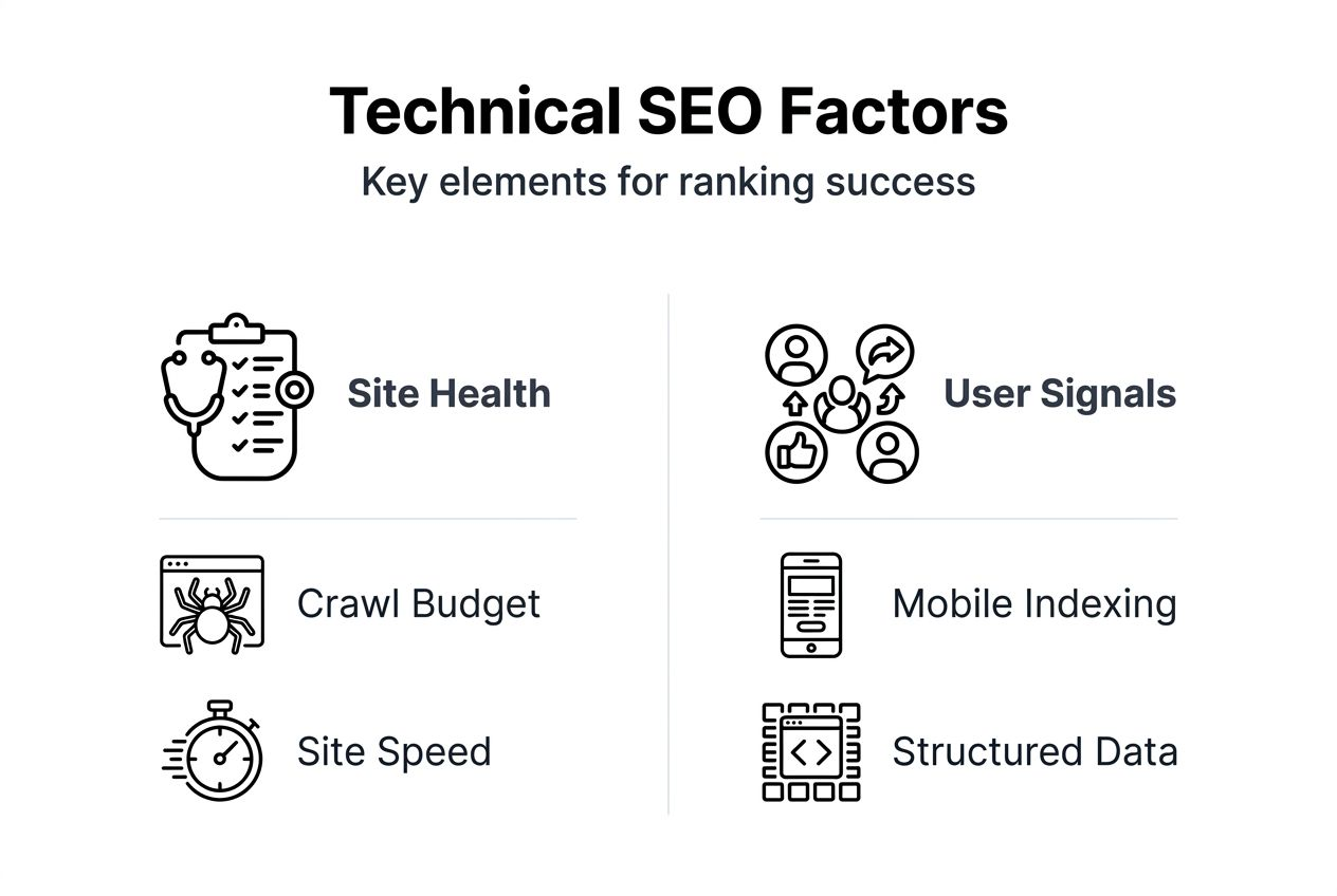 Core technical SEO factors influencing search rankings