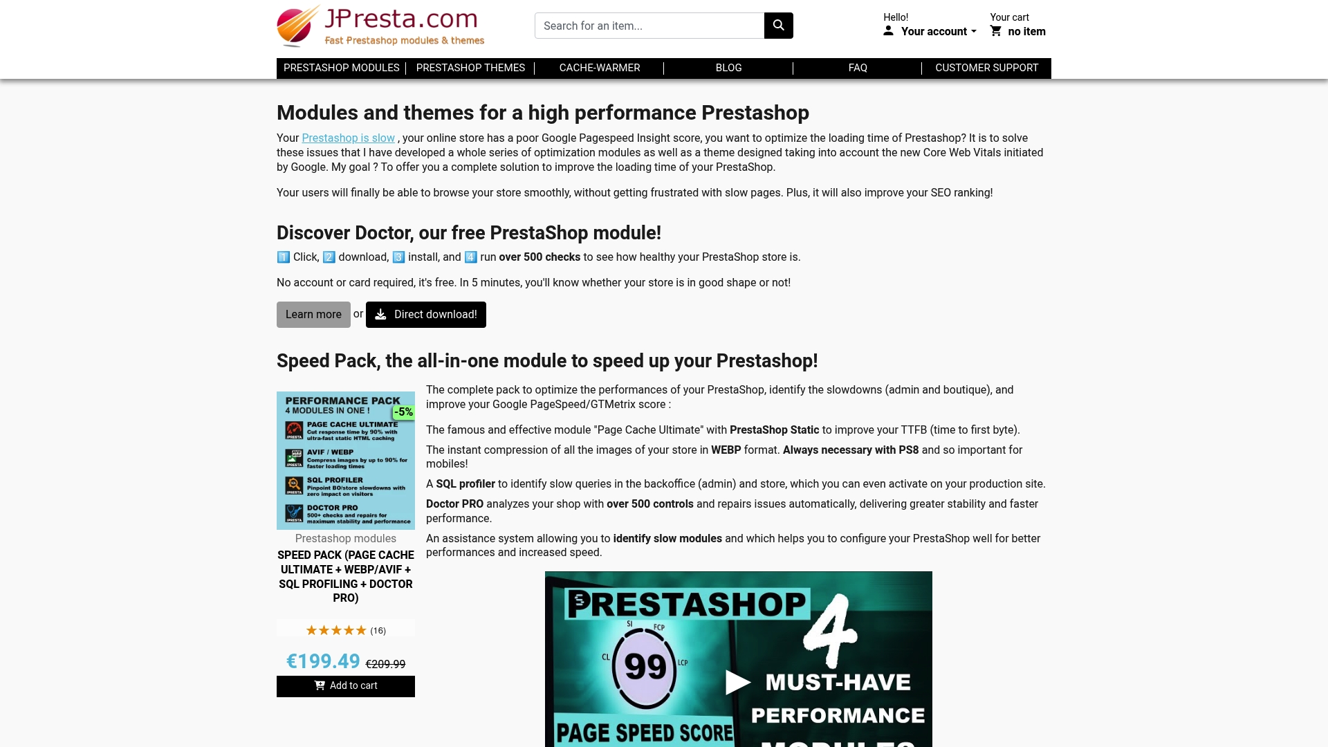 JPrestaModuli Prestashop per ottimizzare SEO e migliorare la velocitàMigliora il tempo di caricamento, supporto di immagini moderne, strumenti diagnostici precisiPrezzi alti per alcuni negozi, informazioni limitate sui dettagli di assistenzaModuli a partire da €49,99