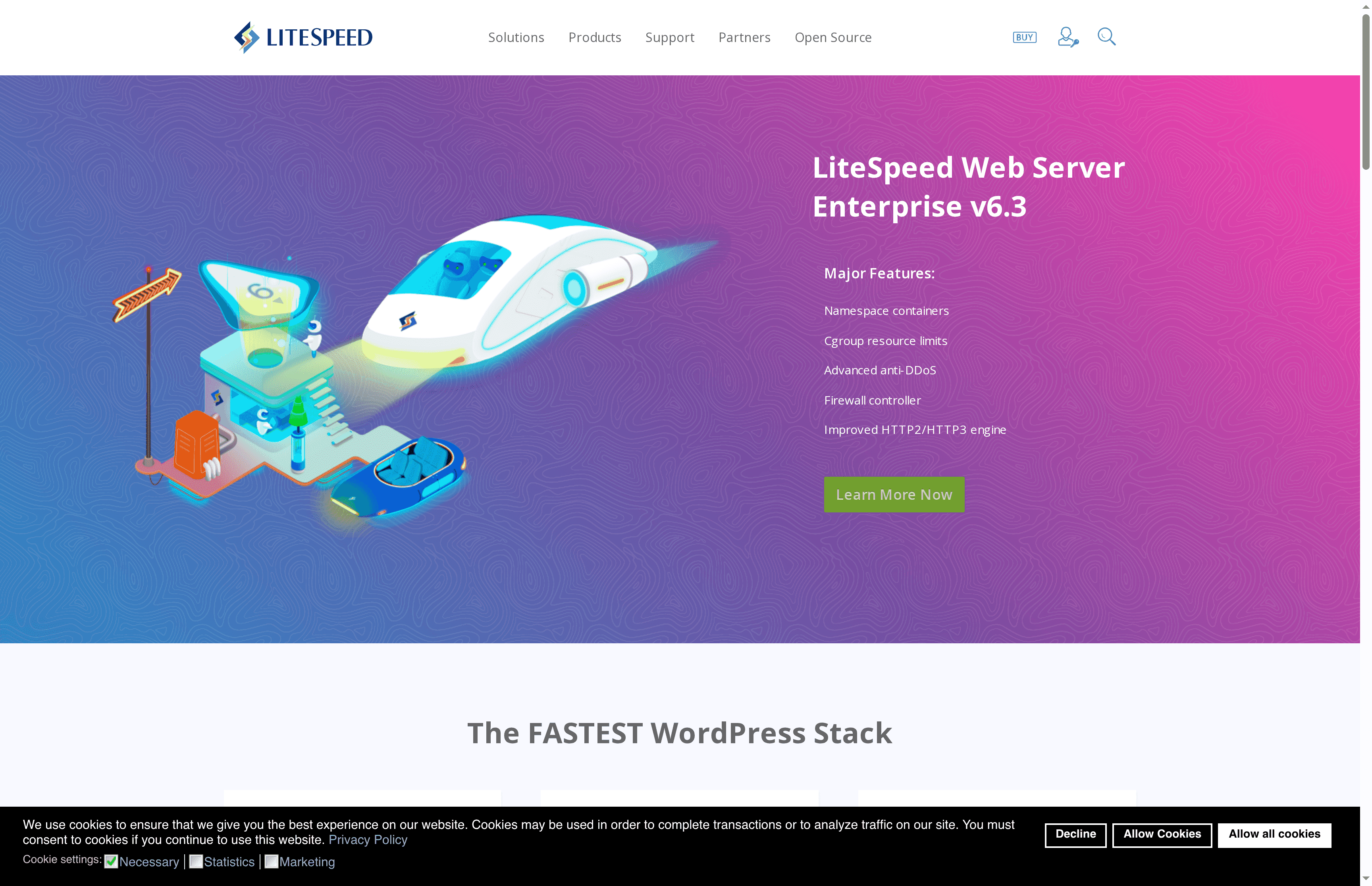 LiteSpeed combina un web server ottimizzato con strumenti specifici per accelerare applicazioni dinamiche come WordPress. Tra le funzionalità salienti ci sono namespace containers con limiti di risorse via cgroup, un controller firewall anti‑DDoS avanzato, un motore HTTP/2 e HTTP/3 migliorato, e LSCache integrato per cache e accelerazione di pagina. Inoltre la piattaforma si integra con QUIC.cloud CDN per caching globale, pensato per distribuire contenuti rapidamente agli utenti.