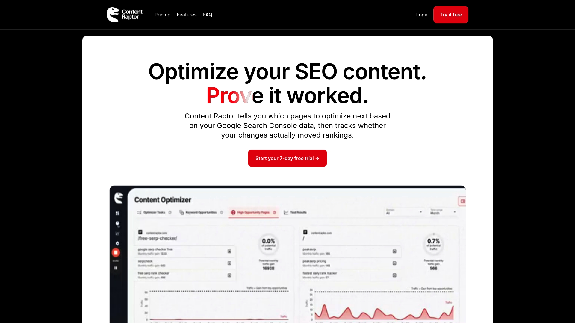 Content Raptor identificerer præcist hvilke sider du skal optimere næste gang ved at analysere Google Search Console-data og måler efterfølgende, om ændringer rent faktisk flytter dine placeringer. Resultatet er et praktisk, datadrevet workflow, der passer til små og mellemstore virksomheder med begrænsede SEO-ressourcer.