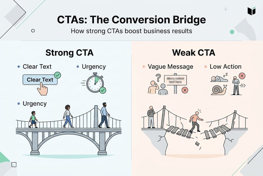CTAs are the bridge between your message and your revenue. Think of your website as a conversation. You share helpful content, build trust, demonstrate value, and then the CTA tells the visitor what to do next. Without it, the conversation just... stops. That silence costs money.