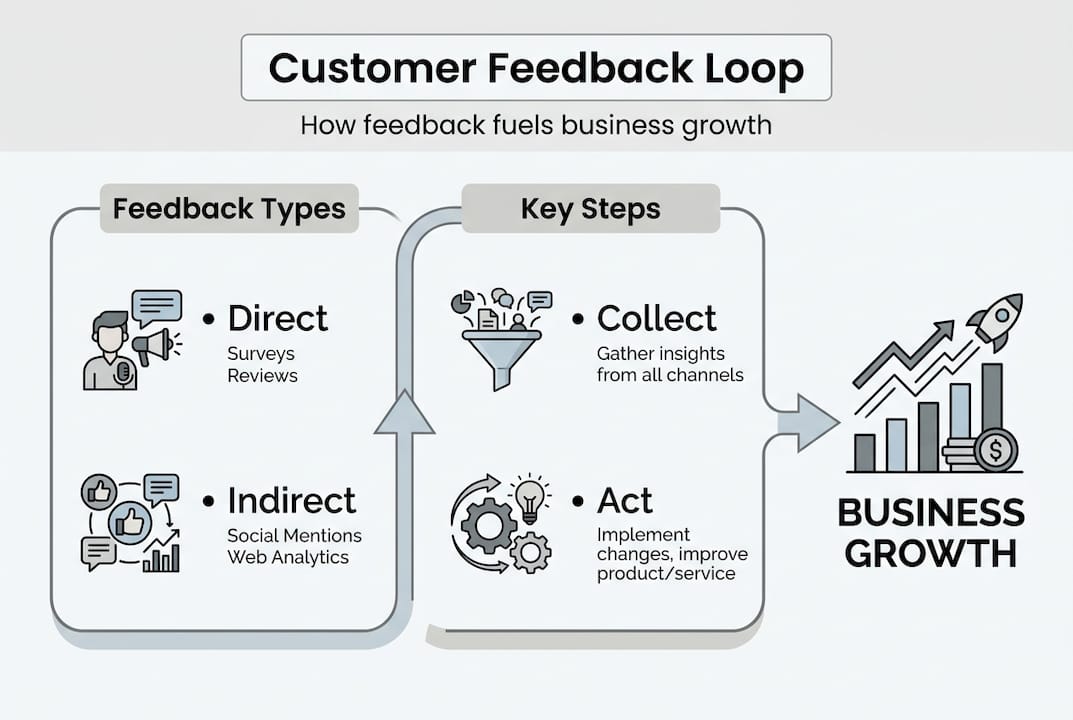 Most businesses treat customer feedback like a suggestion box — something you glance at occasionally and then forget. That's a costly mistake. Acting on feedback boosts retention rates by 25-35% and revenue by 20-40%, yet most small and medium-sized businesses still treat it as a passive data collection exercise. This guide flips that script. You'll learn how to build a real feedback system that turns raw customer opinions into product improvements, stronger loyalty, and measurable business growth. No vague advice — just practical frameworks you can apply this week.