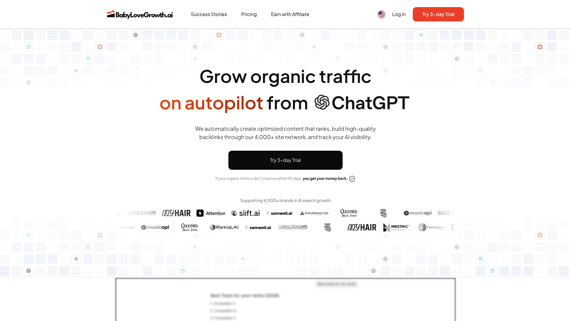 Το BabyLoveGrowth συνδυάζει AI δημιουργία περιεχομένου, ένα ευρύ δίκτυο 4,000+ συνεργαζόμενων sites και παρακολούθηση brand mentions σε AI πλατφόρμες, δημιουργώντας ένα ολοκληρωμένο σύστημα οργανικής ανάπτυξης. Η ικανότητα να προγραμματίζει έναν πλήρη μήνα περιεχομένου και να δημοσιεύει στο CMS μειώνει τα βήματα εργασίας που συνήθως απαιτούν πολλαπλά εργαλεία.