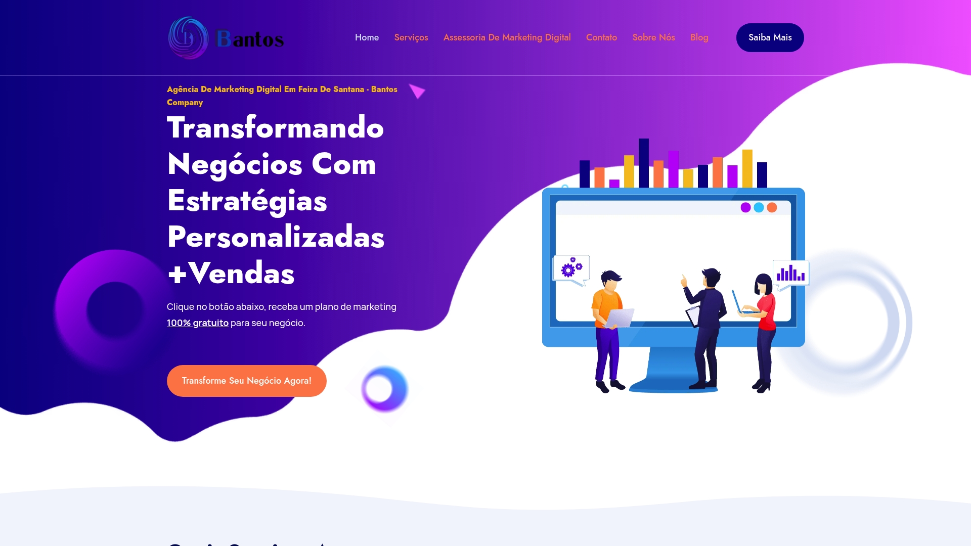 A Bantos Company apresenta-se como uma agência de marketing digital em Feira de Santana focada em transformar negócios através de estratégias personalizadas que aumentam vendas, faturamento e receita. Apoia-se numa metodologia chamada ELEE para sistematizar testes de canais, retenção e expansão. Em poucas palavras: é uma opção prática para empresas locais que procuram resultados financeiros mensuráveis, embora exija contacto para detalhes sobre custos.
