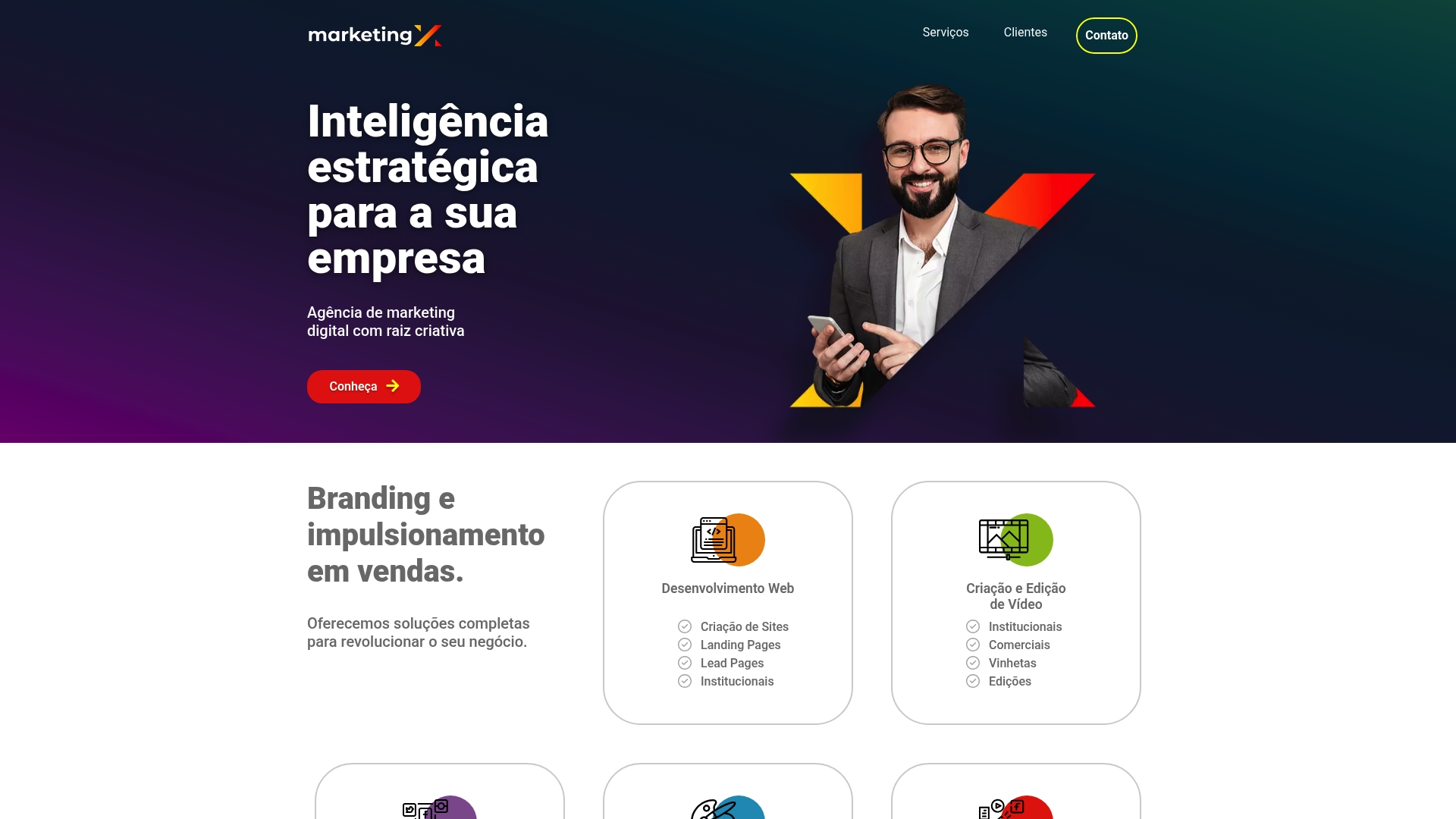 Agência Marketing X é uma agência de marketing digital sediada em Feira de Santana com mais de 7 anos de experiência, posicionando‑se como fornecedor de serviços completos para quem precisa de presença digital profissional. Trabalha com desenvolvimento web, produção audiovisual, gestão de redes sociais e design, tendo atendido mais de 400 clientes e produzido mais de 5.000 peças publicitárias. Em suma: é uma solução “tudo em um” para empresas que querem lançar ou renovar a sua imagem online, mas exige clarificação de preços e processos para projetos específicos.
